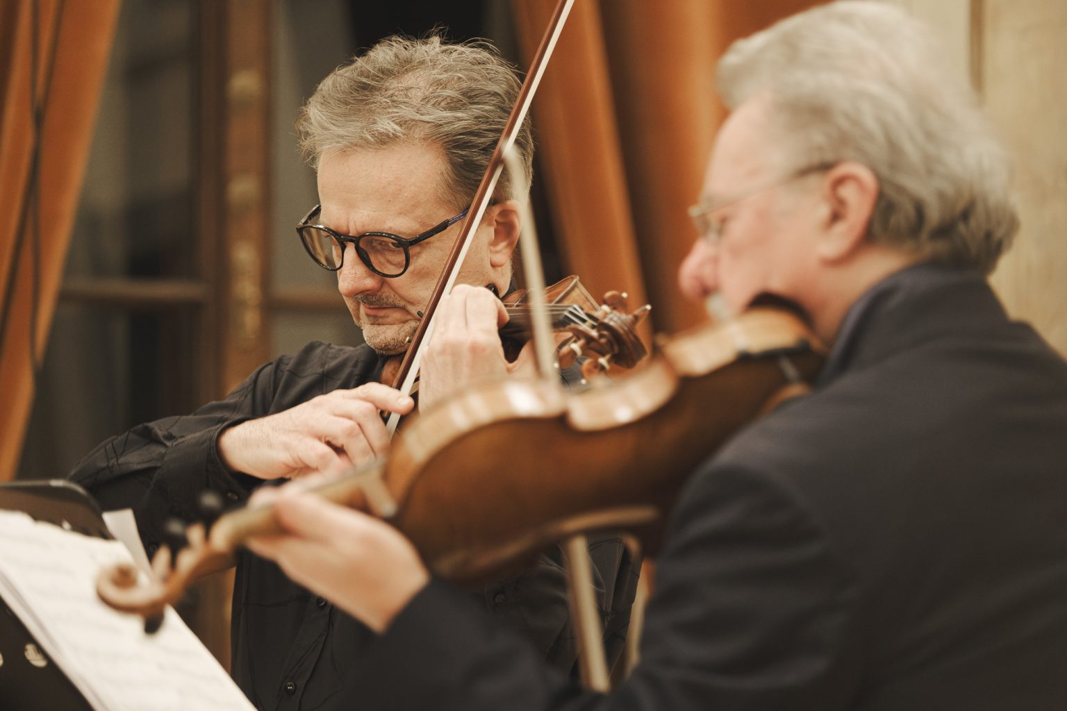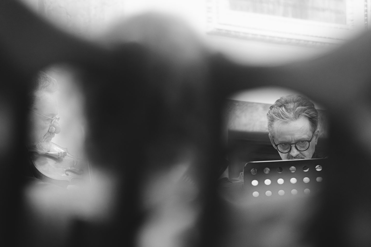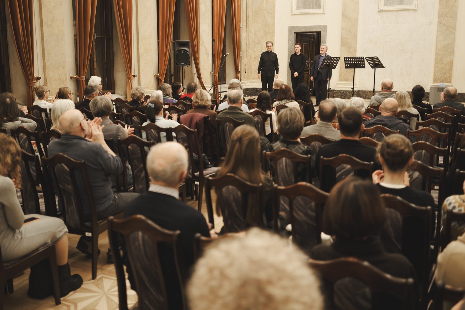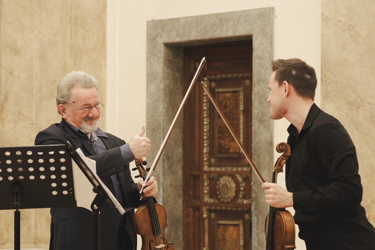 Koncert w wykonaniu Daniela Stabrawy (skrzypce), Piotra Tarcholika (skrzypce) i Dawida Jadamusa (altówka), który odbył się w Auli Florianka w ramach 5. Festiwalu duetów „A due” (7-11.12.2025).