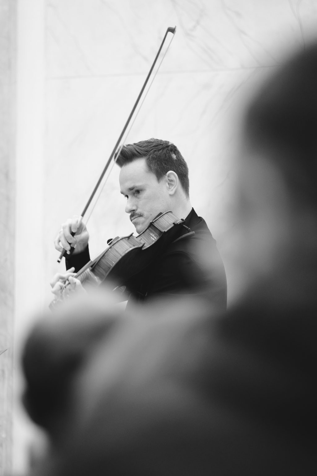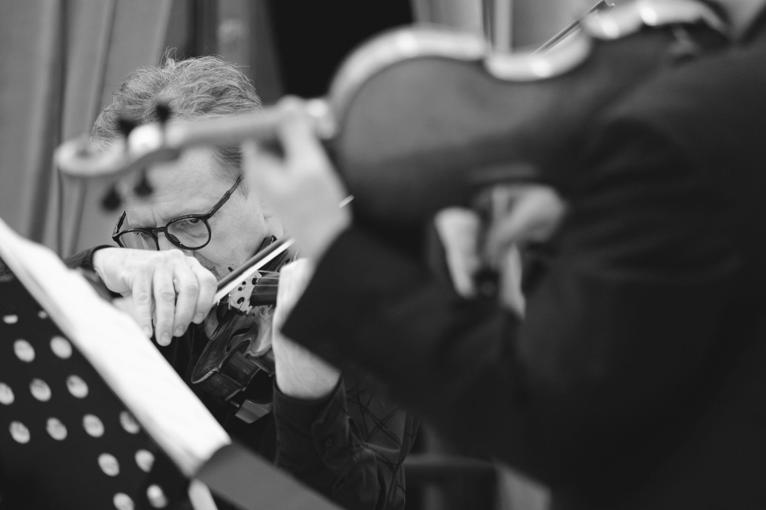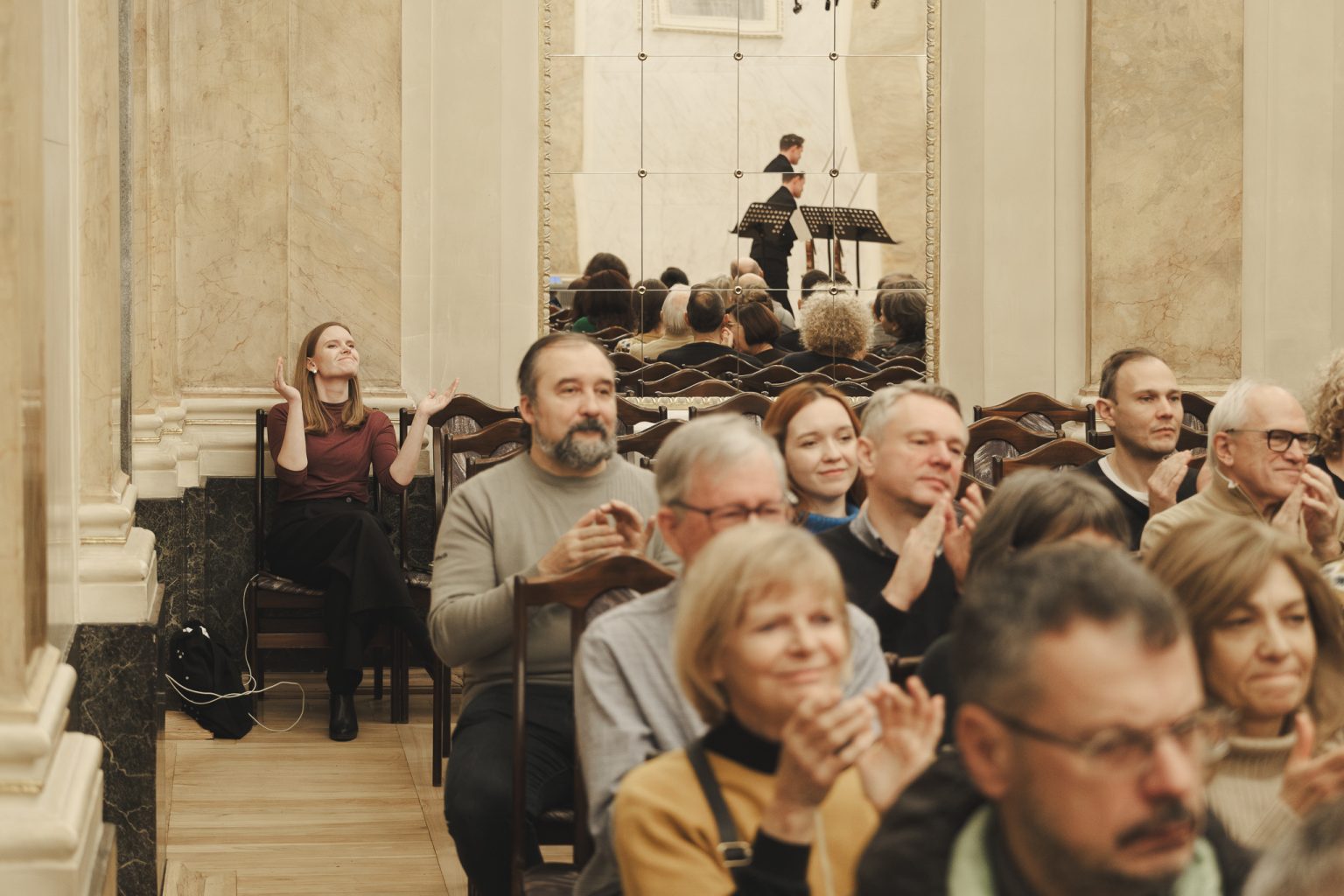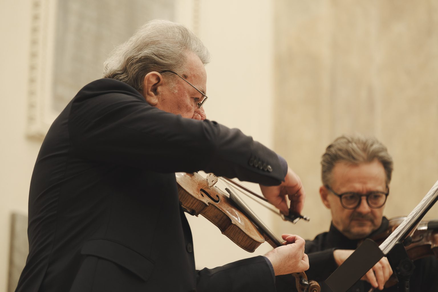 Koncert w wykonaniu Daniela Stabrawy (skrzypce), Piotra Tarcholika (skrzypce) i Dawida Jadamusa (altówka), który odbył się w Auli Florianka w ramach 5. Festiwalu duetów „A due” (7-11.12.2025).