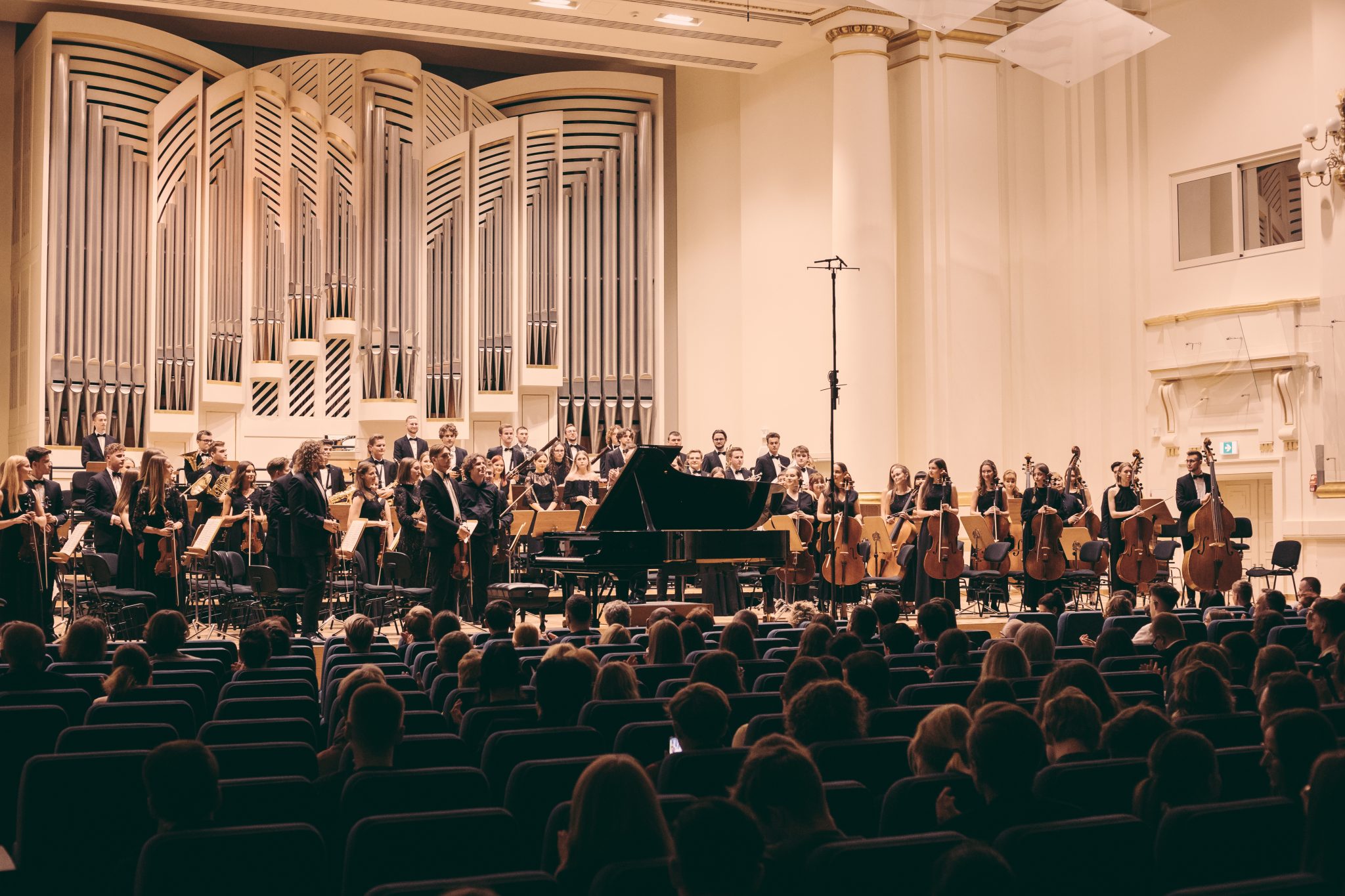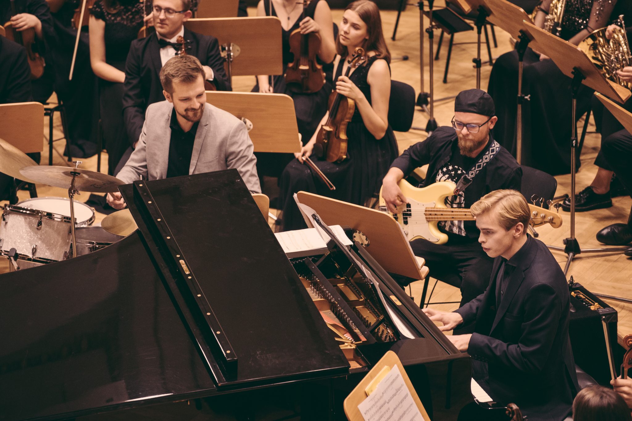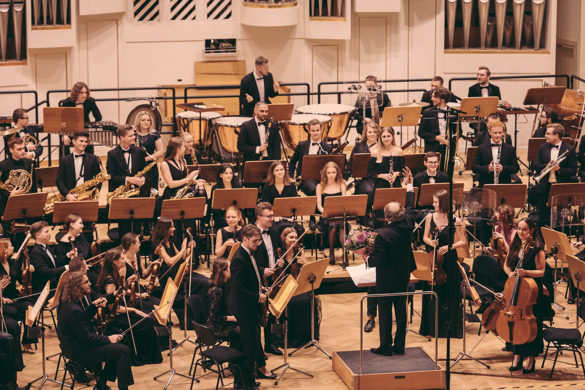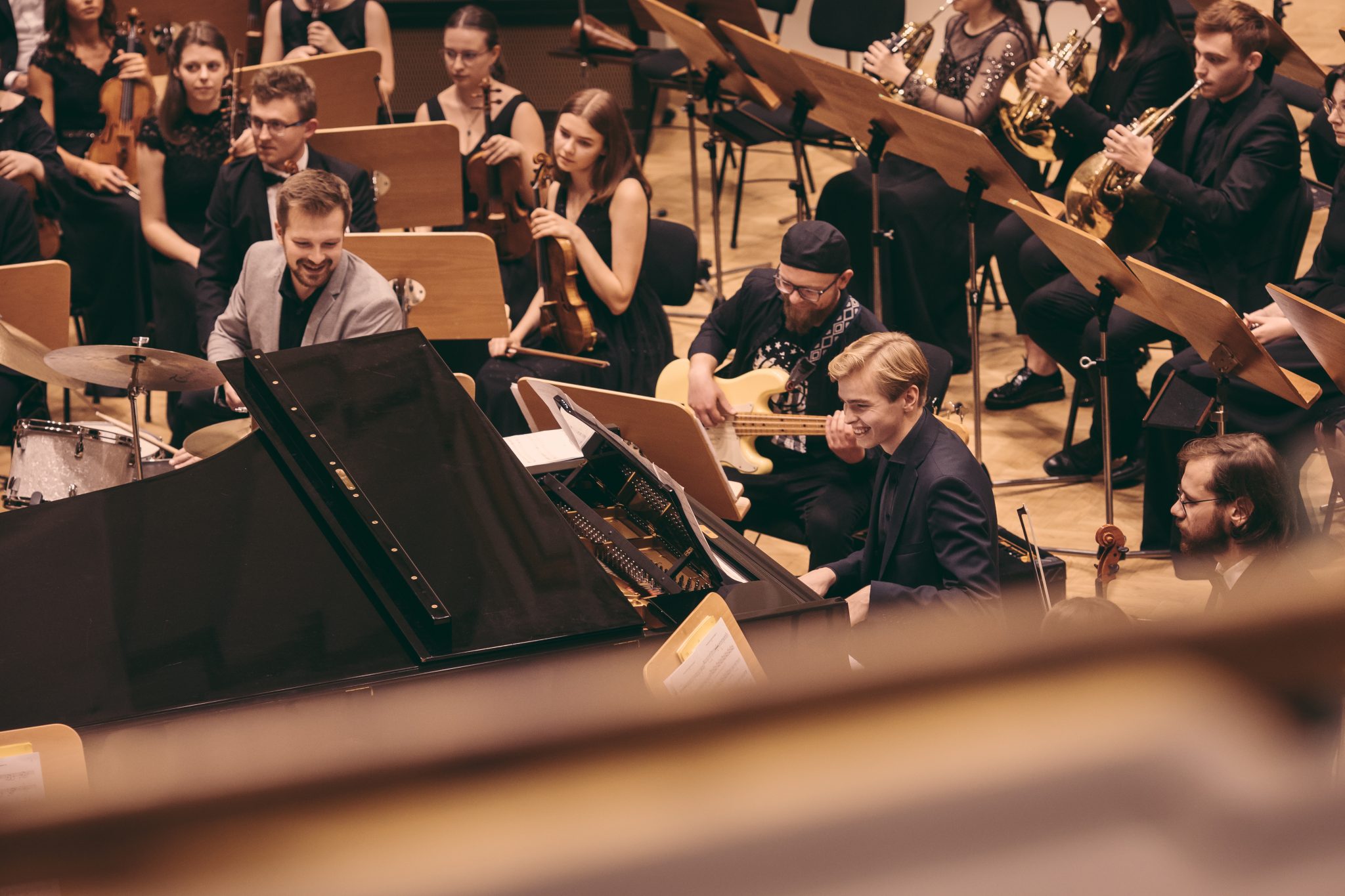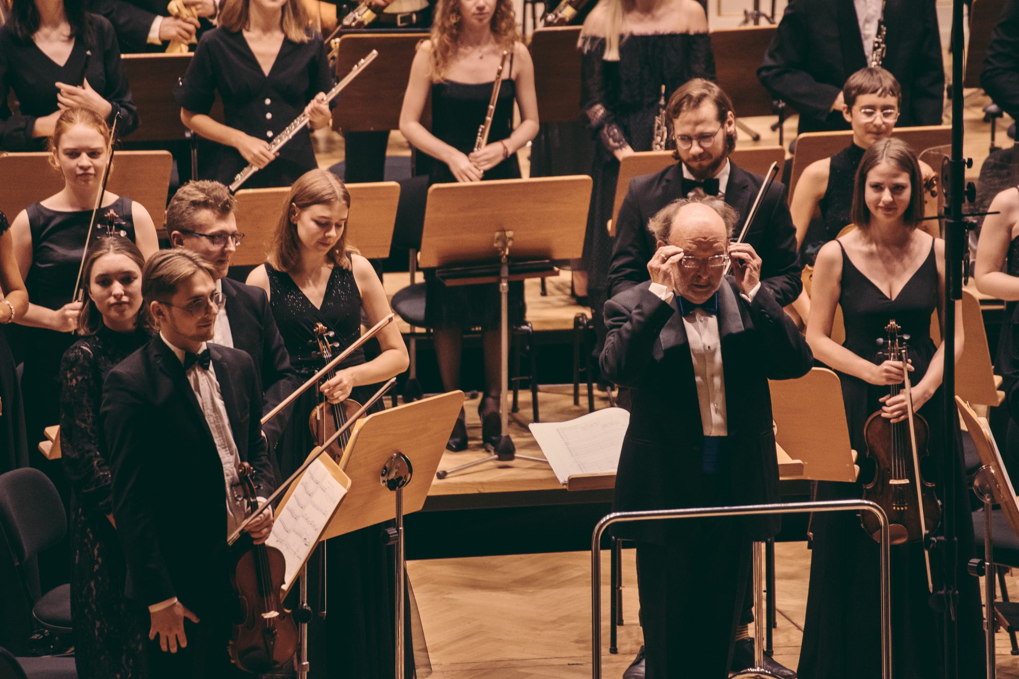 Koncert Orkiestry Symfonicznej w Filharmonii Krakowskiej pod dyrygenturą Rafała Jacka Delekty, z udziałem solistów – Łukasza Jankowskiego (flet) i Marka Szlezera (fortepian), fot. Piotr Markowski.