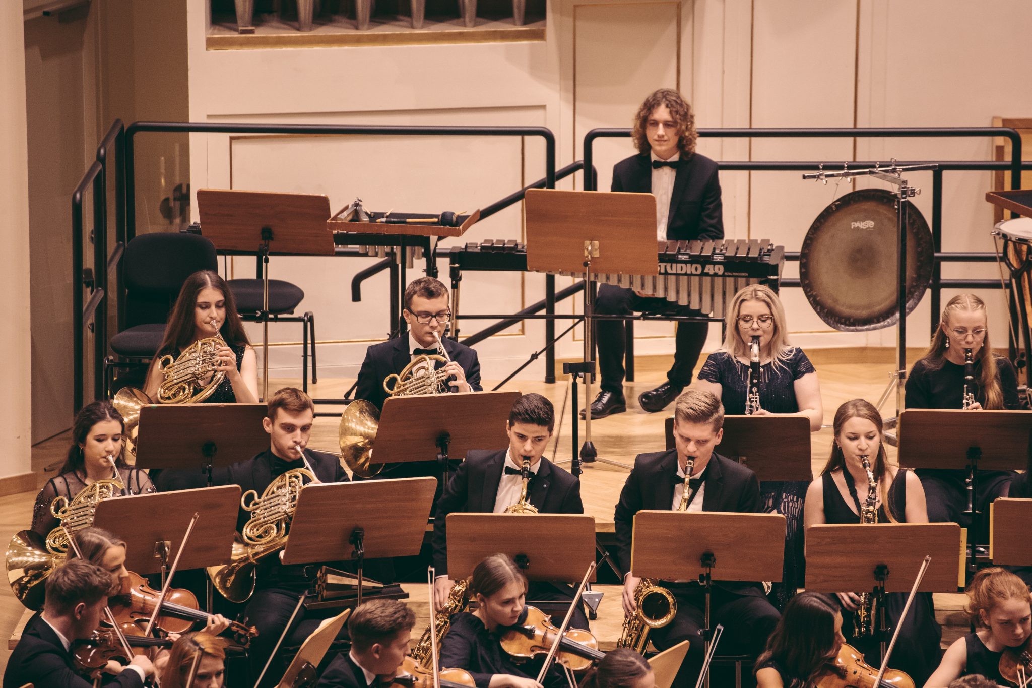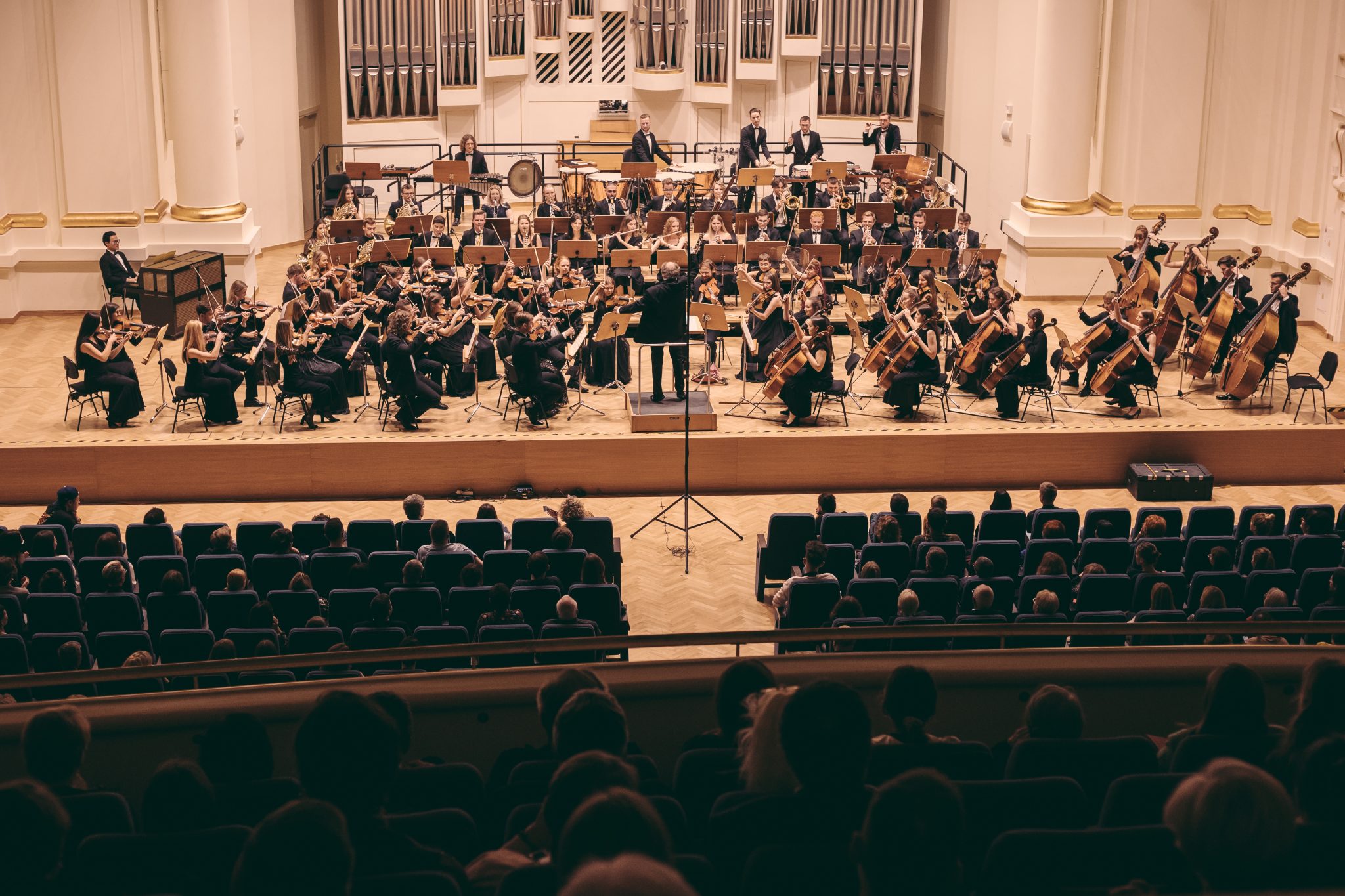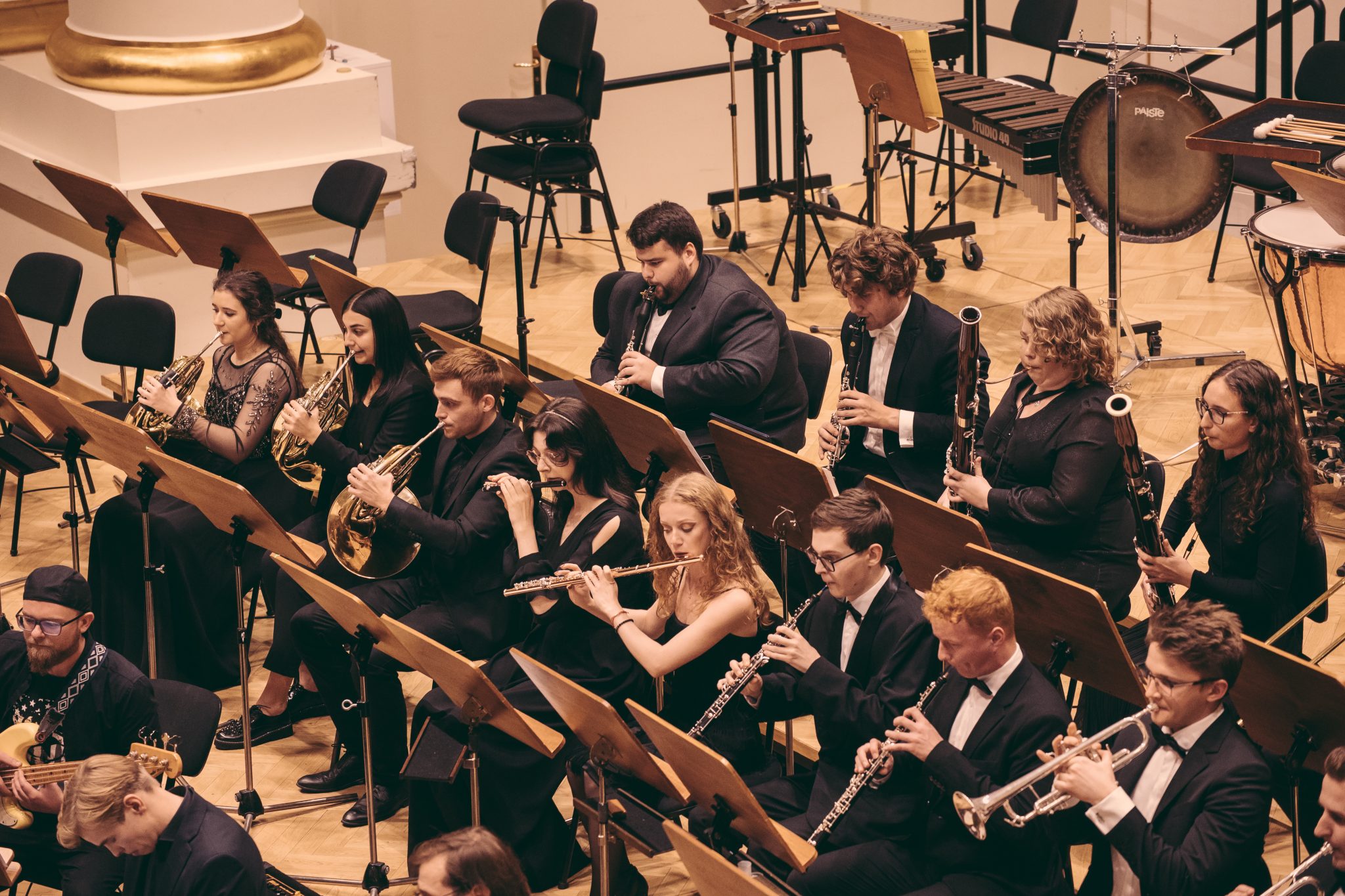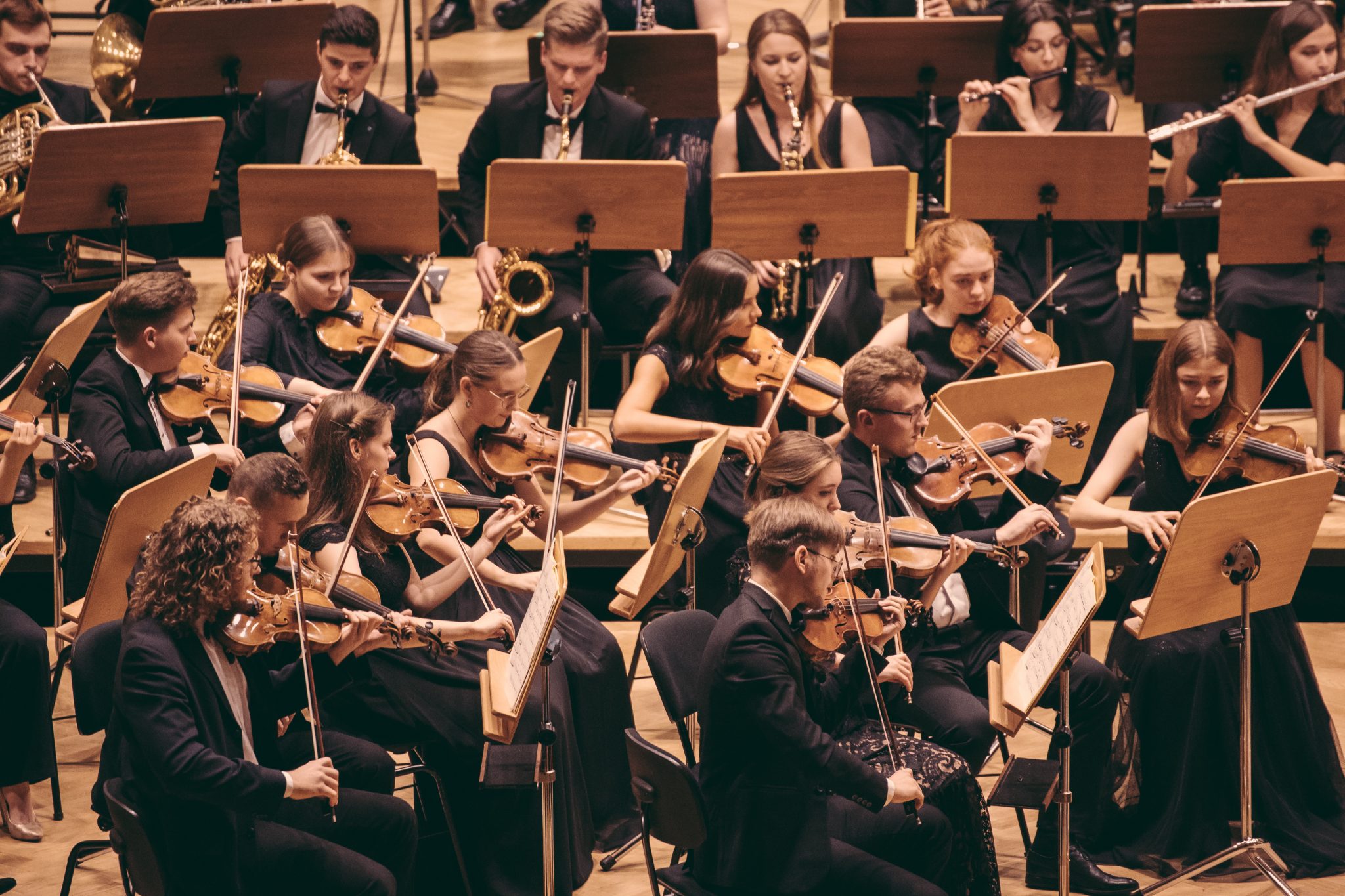 Koncert Orkiestry Symfonicznej w Filharmonii Krakowskiej pod dyrygenturą Rafała Jacka Delekty, z udziałem solistów – Łukasza Jankowskiego (flet) i Marka Szlezera (fortepian), fot. Piotr Markowski.