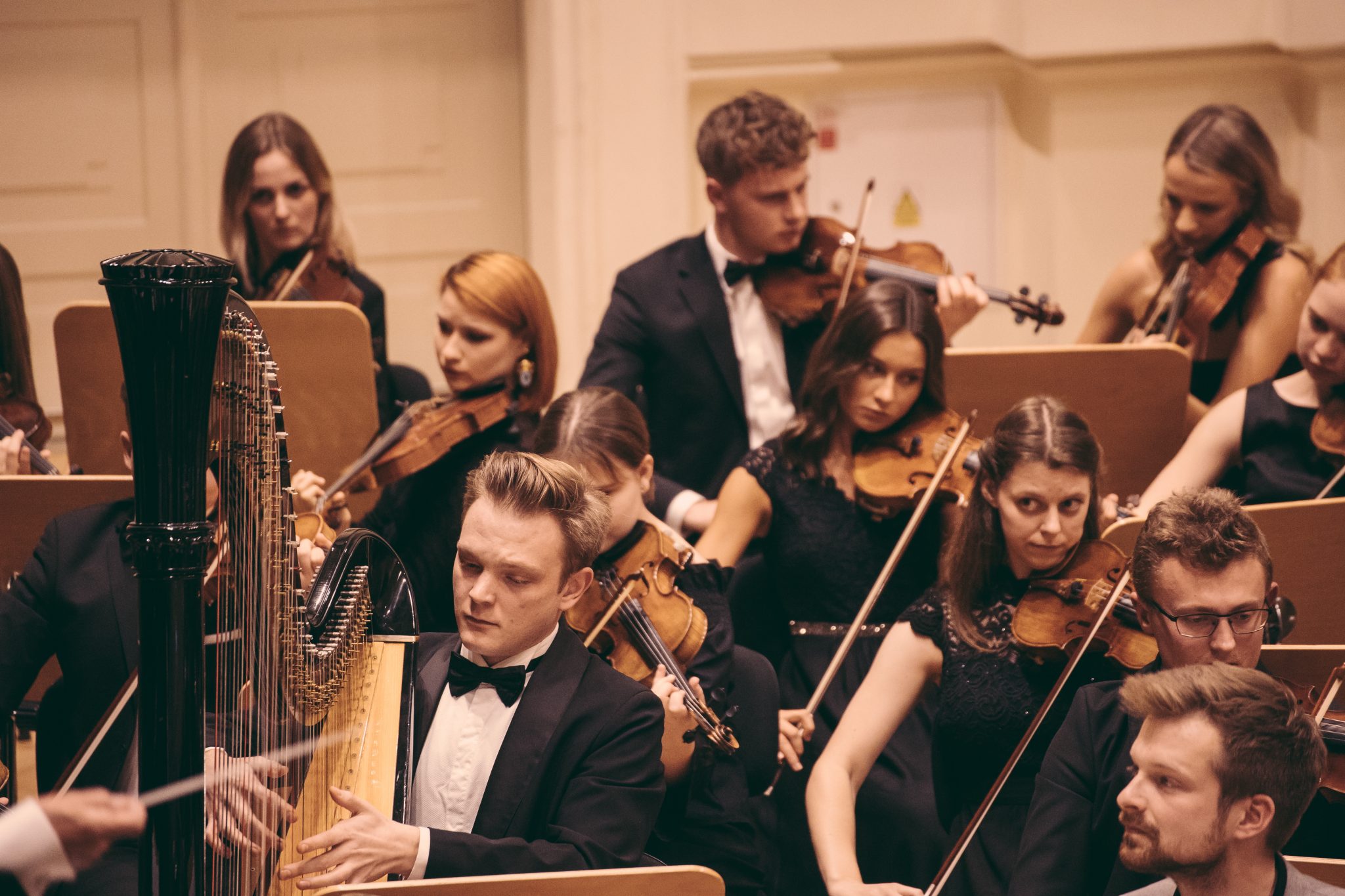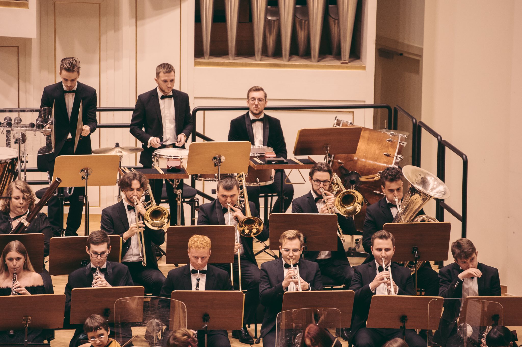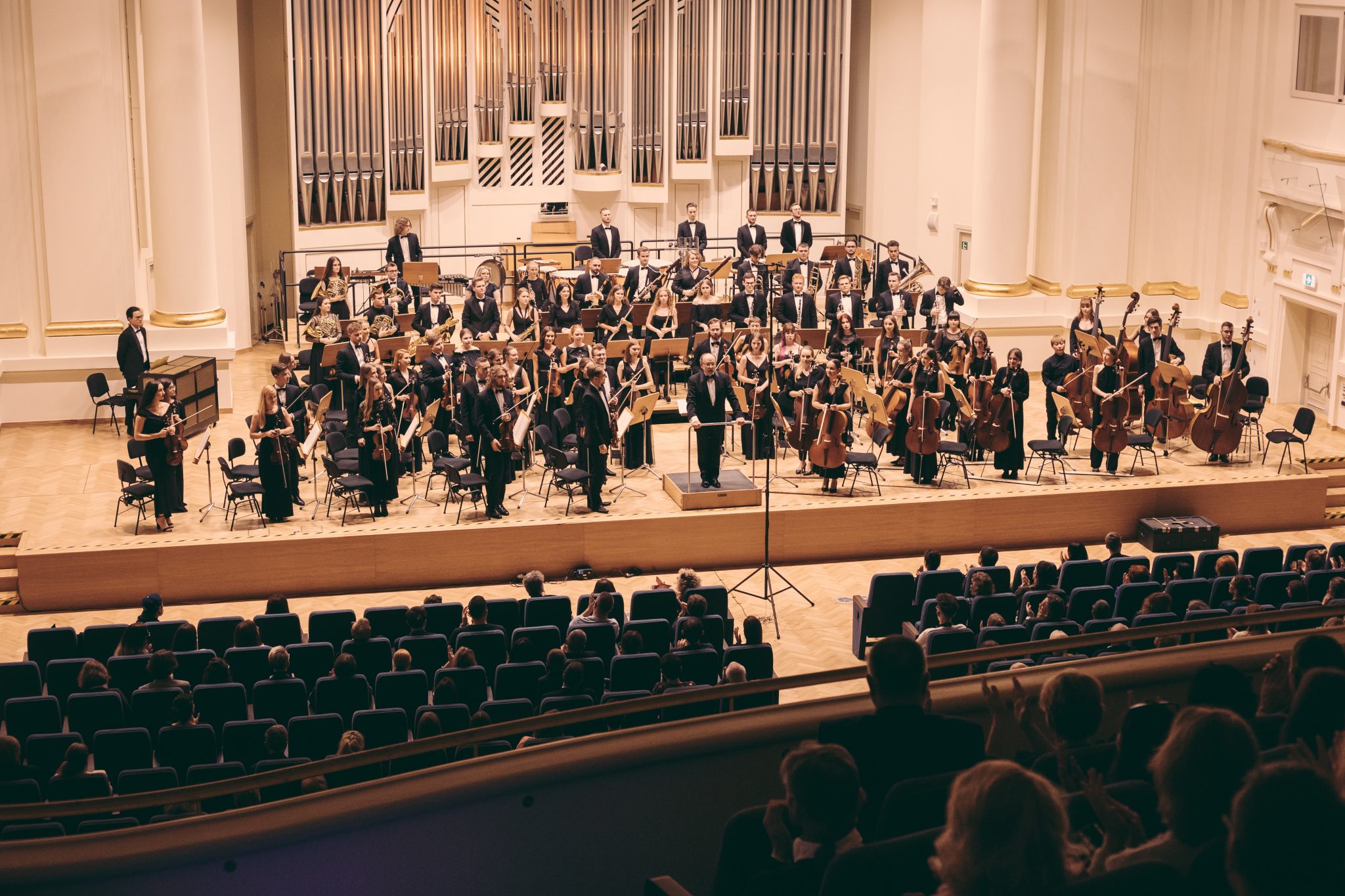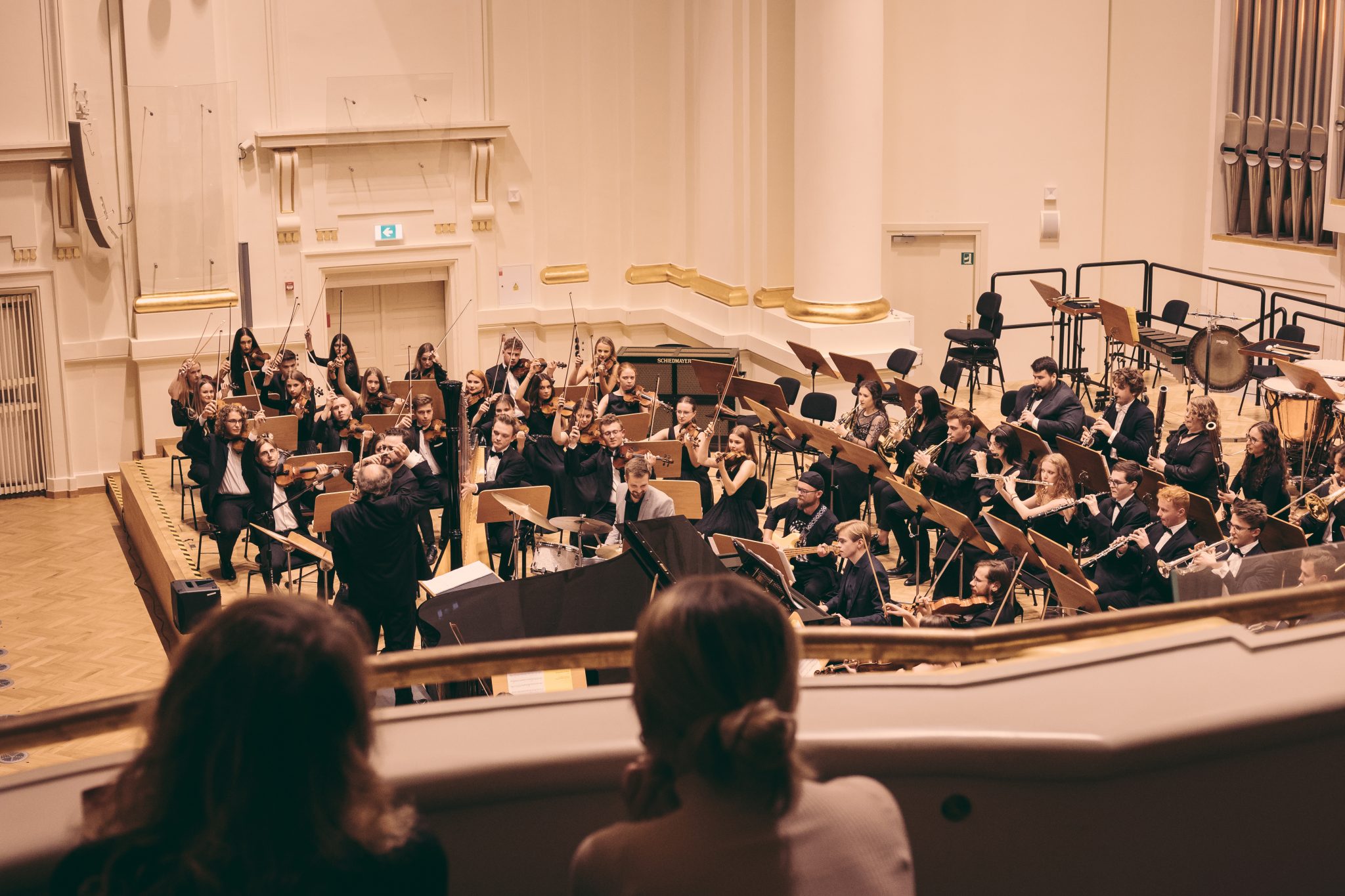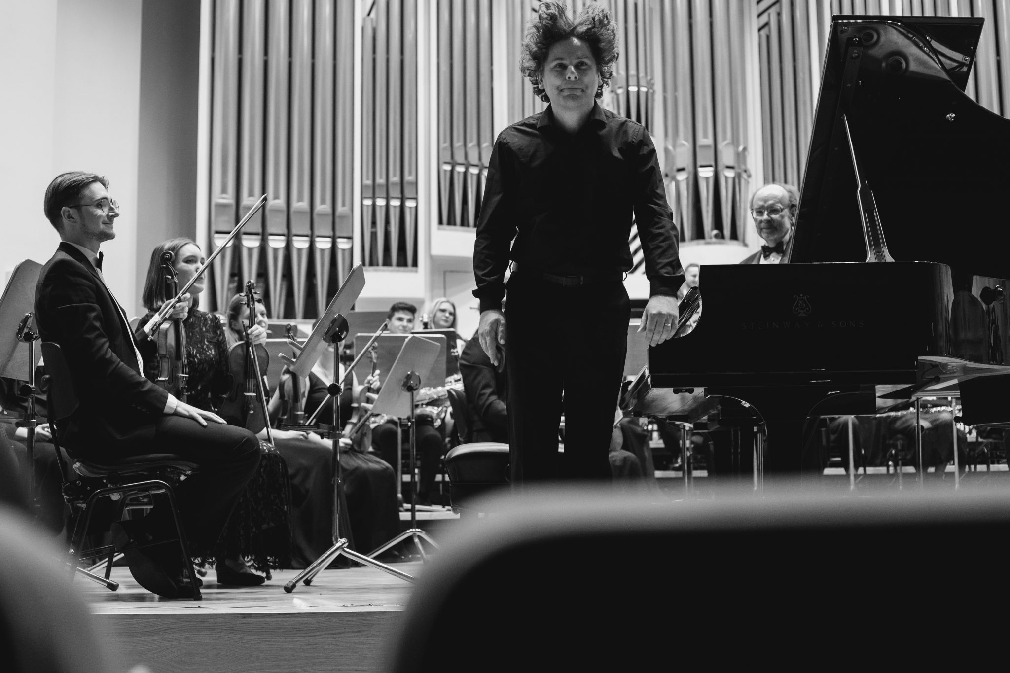 Koncert Orkiestry Symfonicznej w Filharmonii Krakowskiej pod dyrygenturą Rafała Jacka Delekty, z udziałem solistów – Łukasza Jankowskiego (flet) i Marka Szlezera (fortepian), fot. Piotr Markowski.