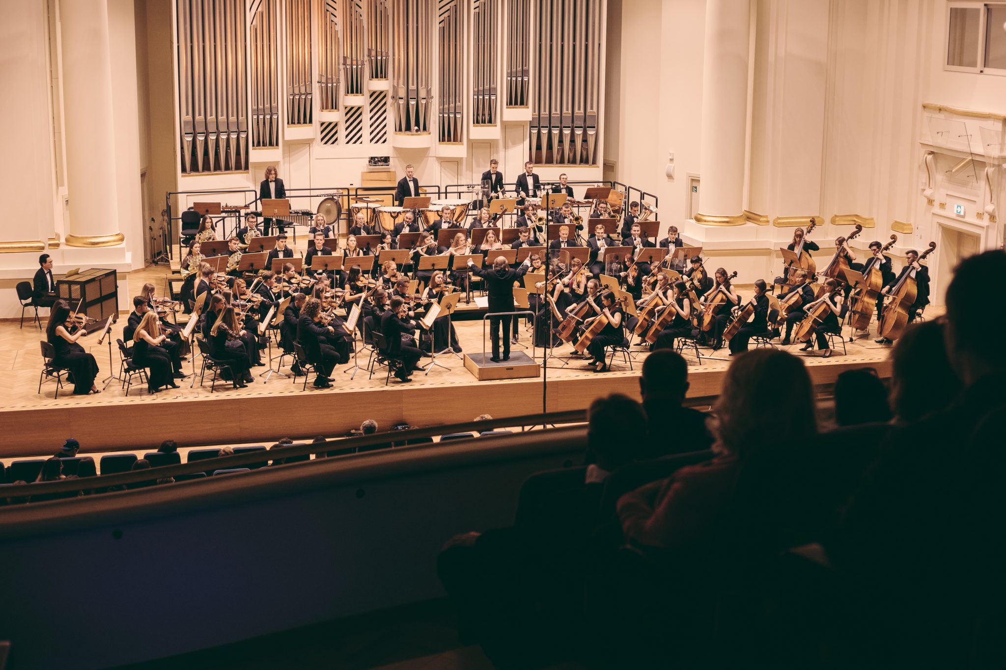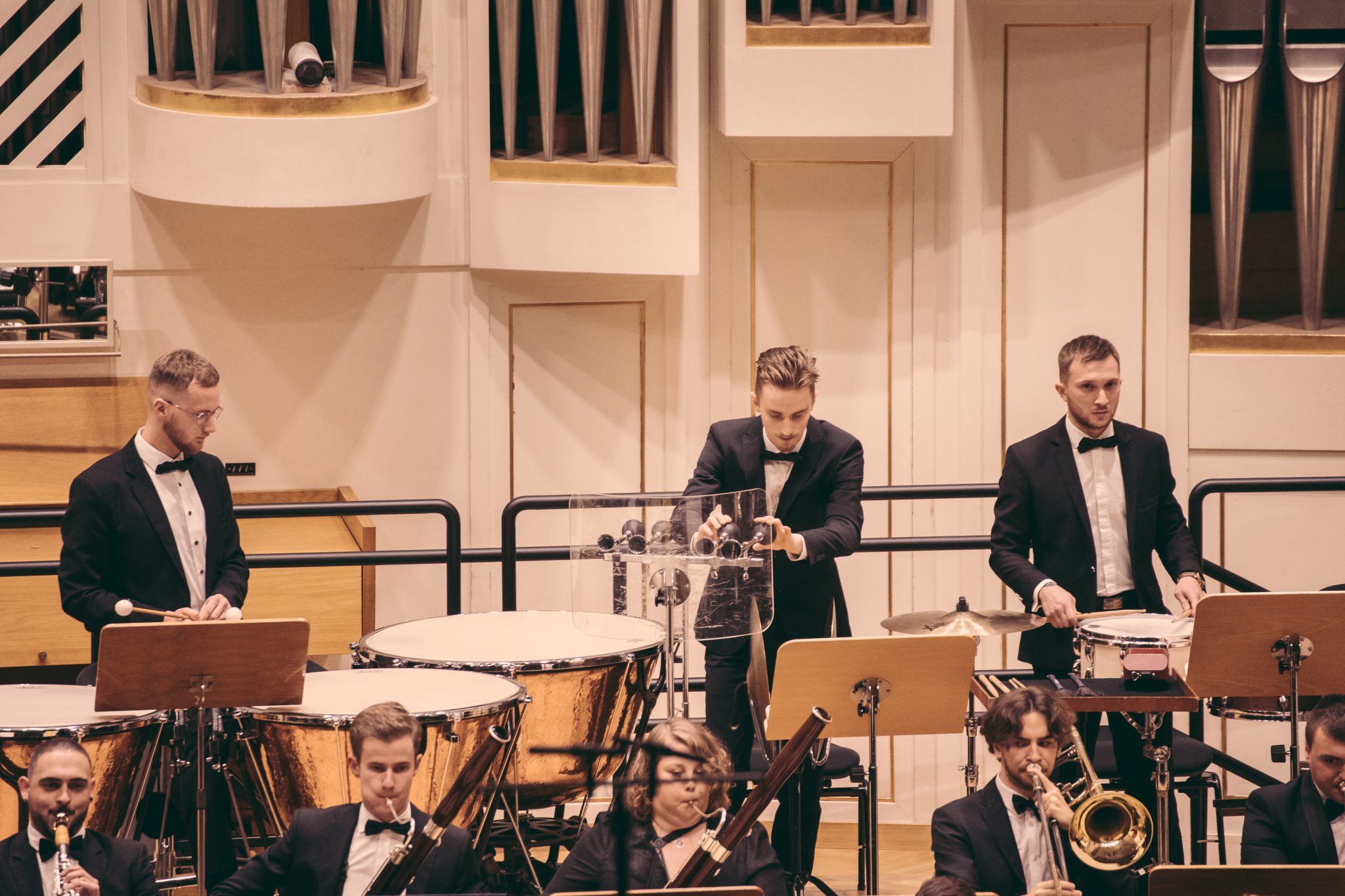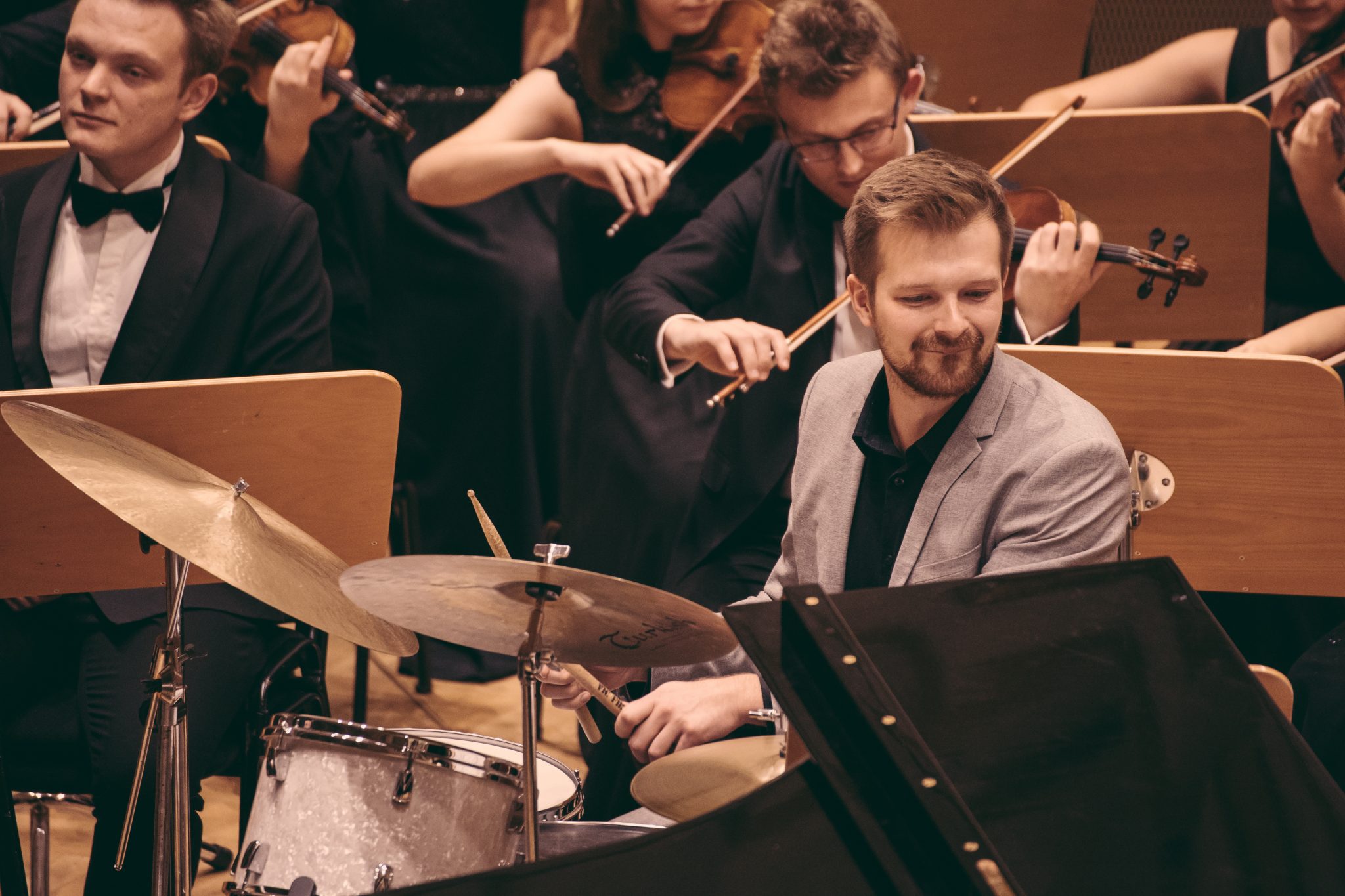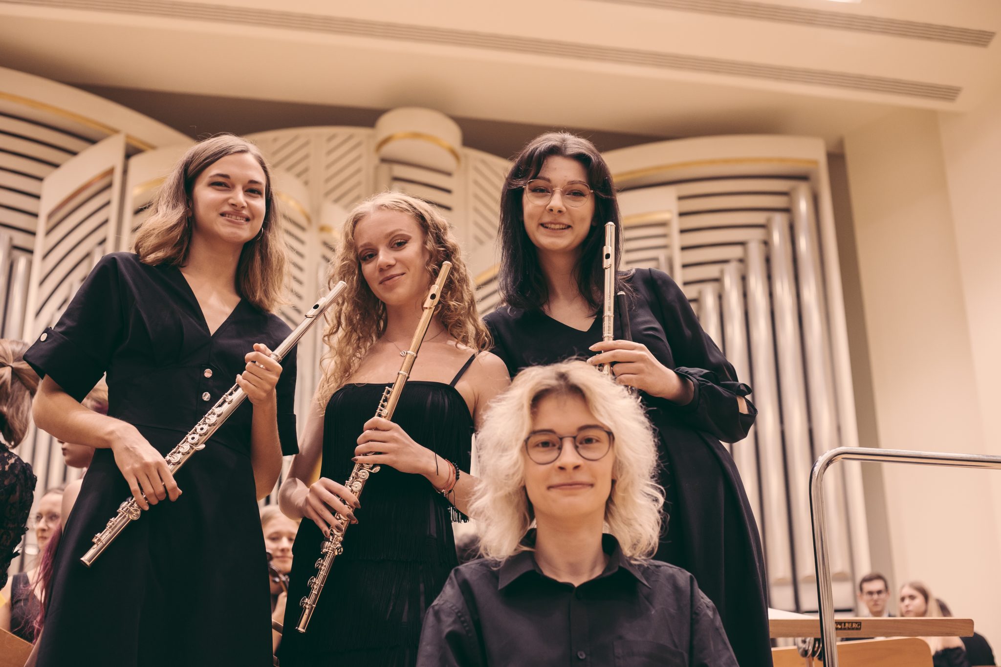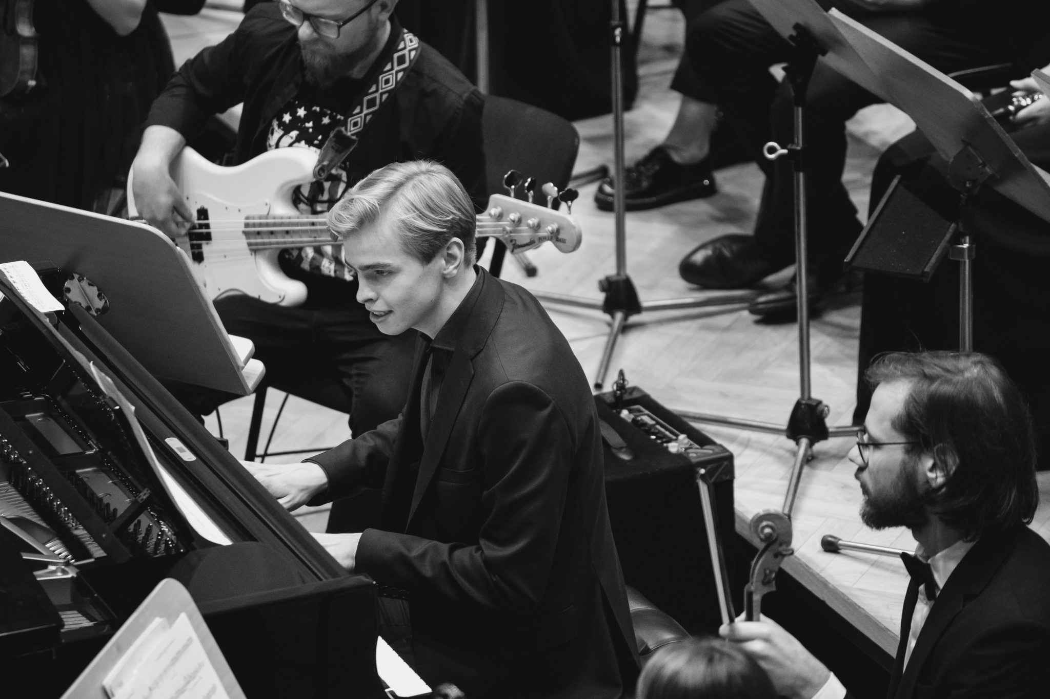 Koncert Orkiestry Symfonicznej w Filharmonii Krakowskiej pod dyrygenturą Rafała Jacka Delekty, z udziałem solistów – Łukasza Jankowskiego (flet) i Marka Szlezera (fortepian), fot. Piotr Markowski.