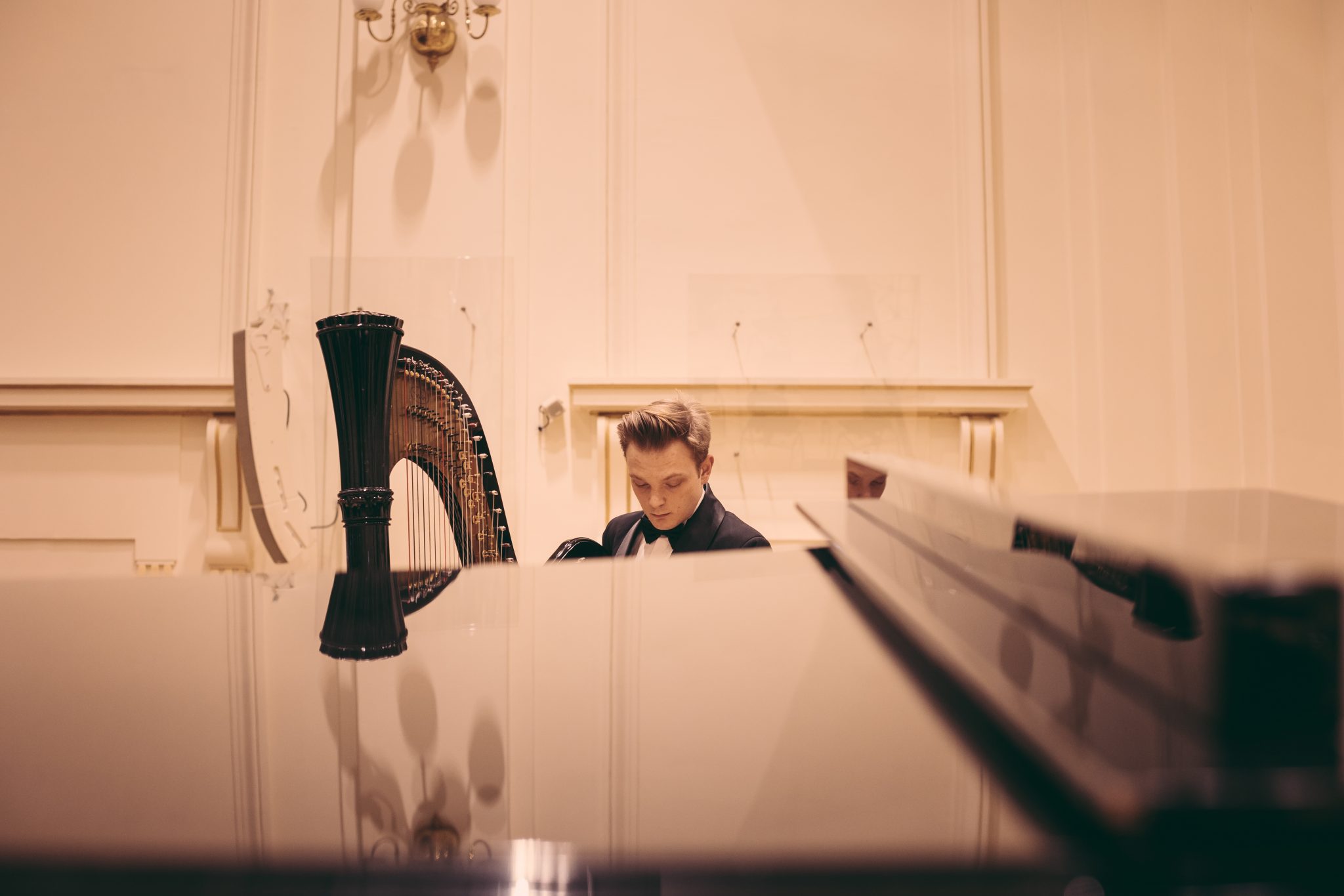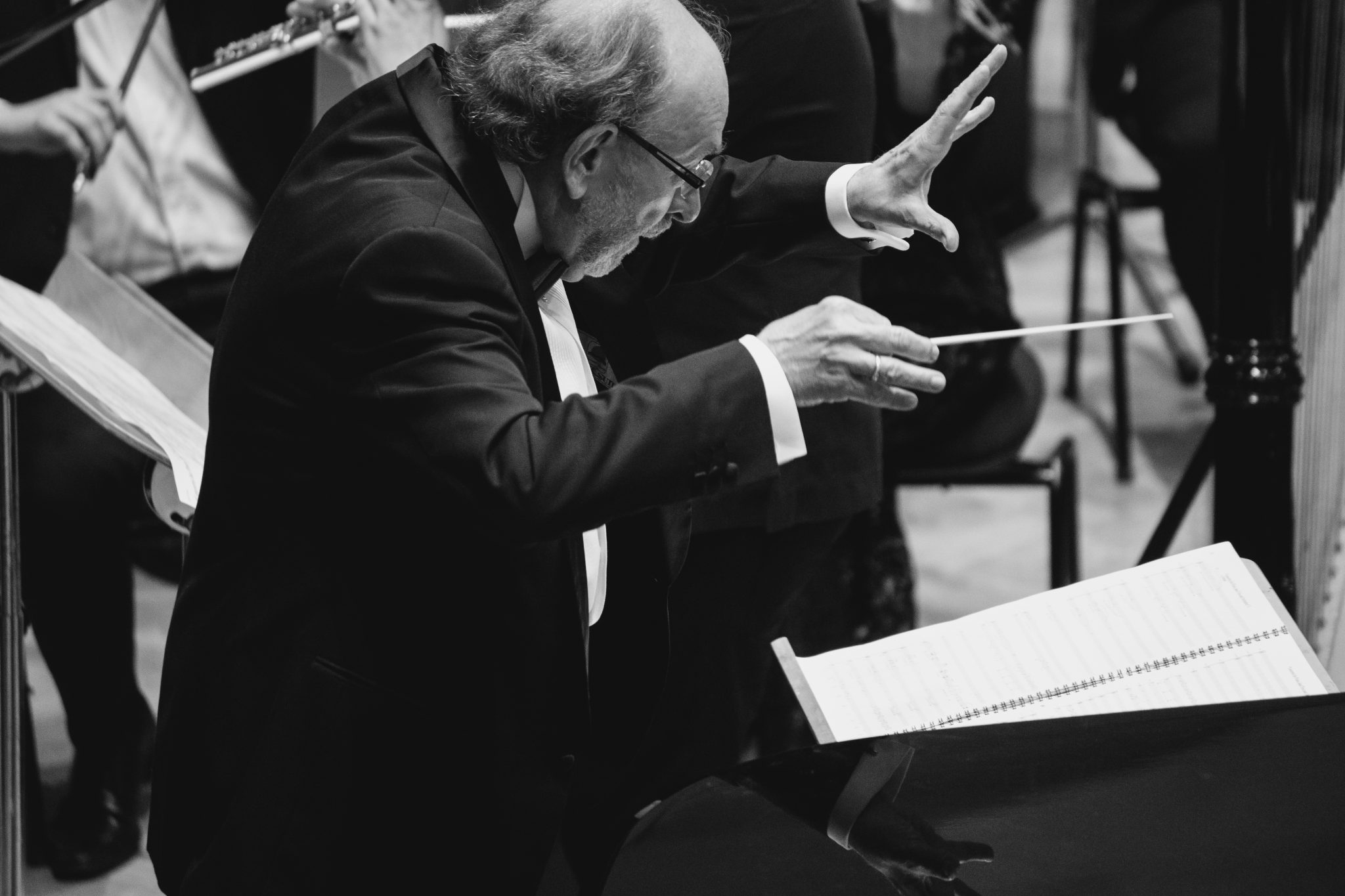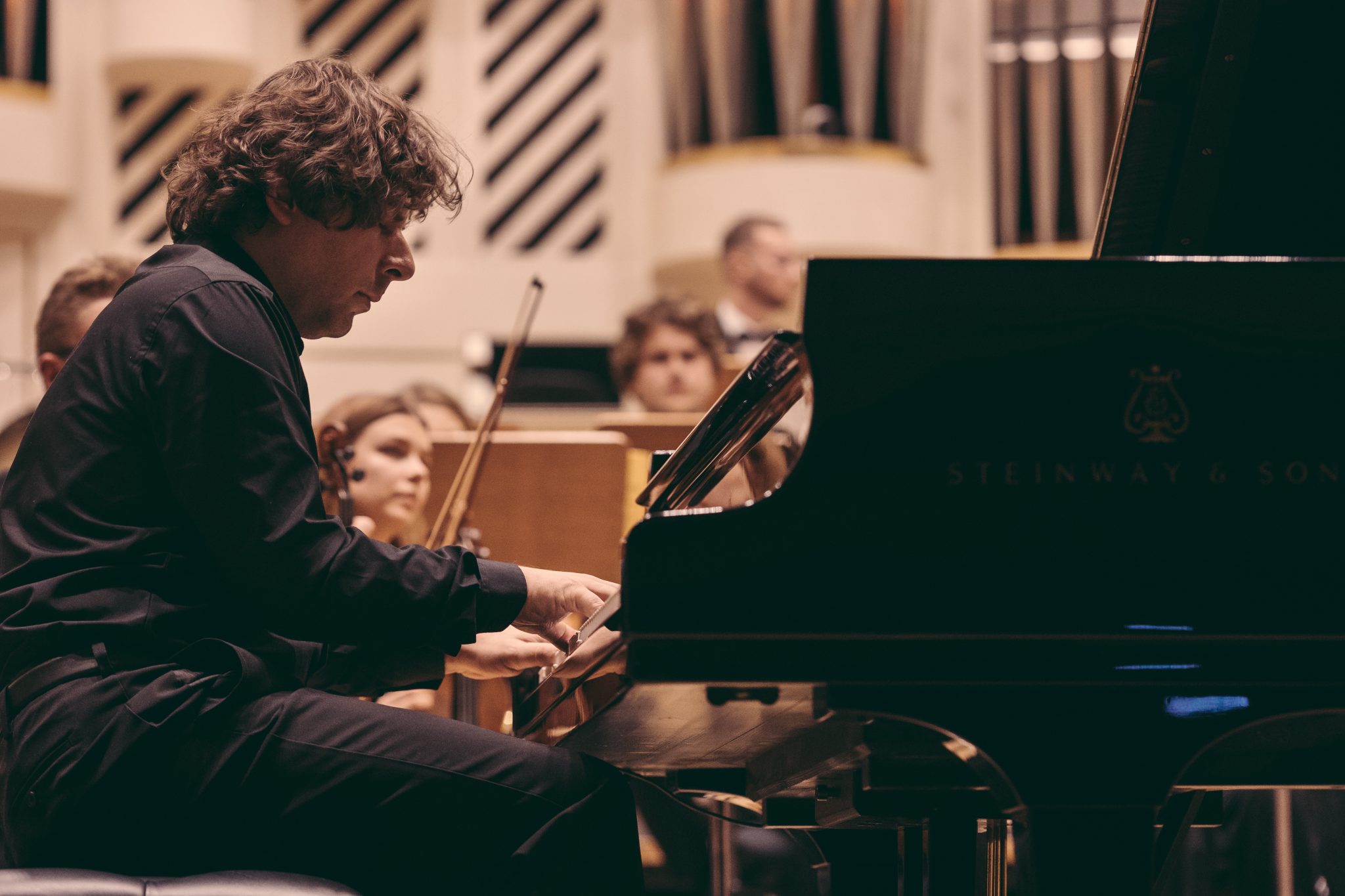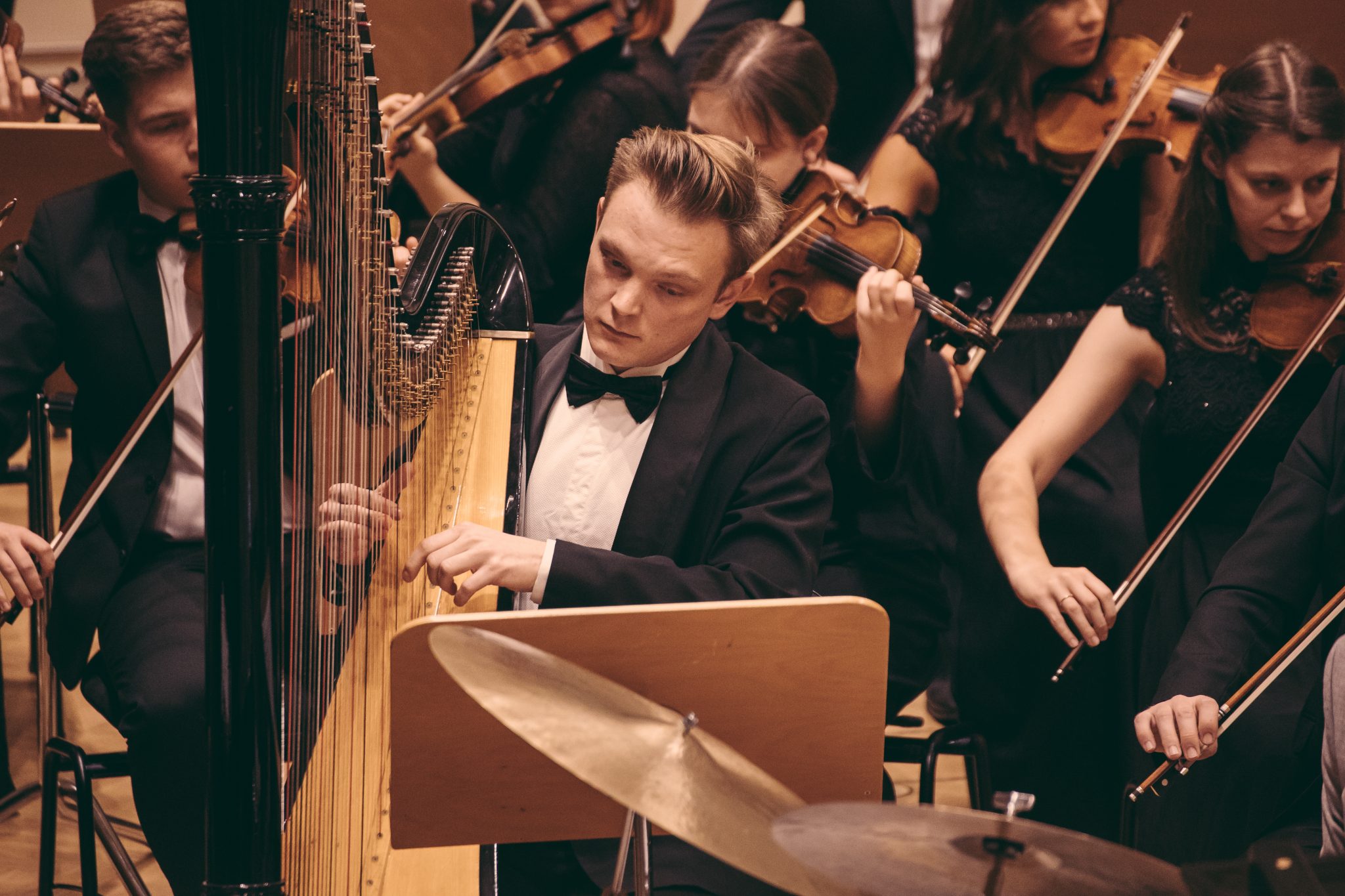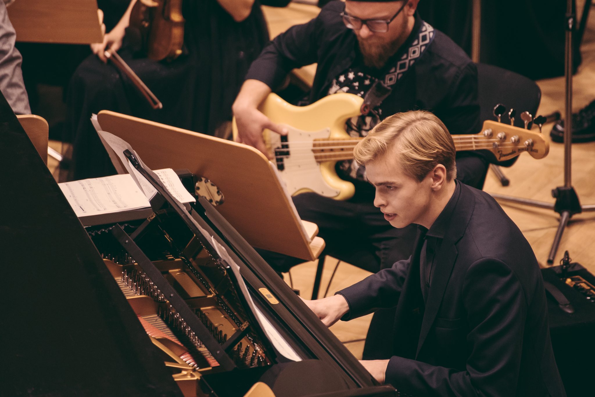 Koncert Orkiestry Symfonicznej w Filharmonii Krakowskiej pod dyrygenturą Rafała Jacka Delekty, z udziałem solistów – Łukasza Jankowskiego (flet) i Marka Szlezera (fortepian), fot. Piotr Markowski.