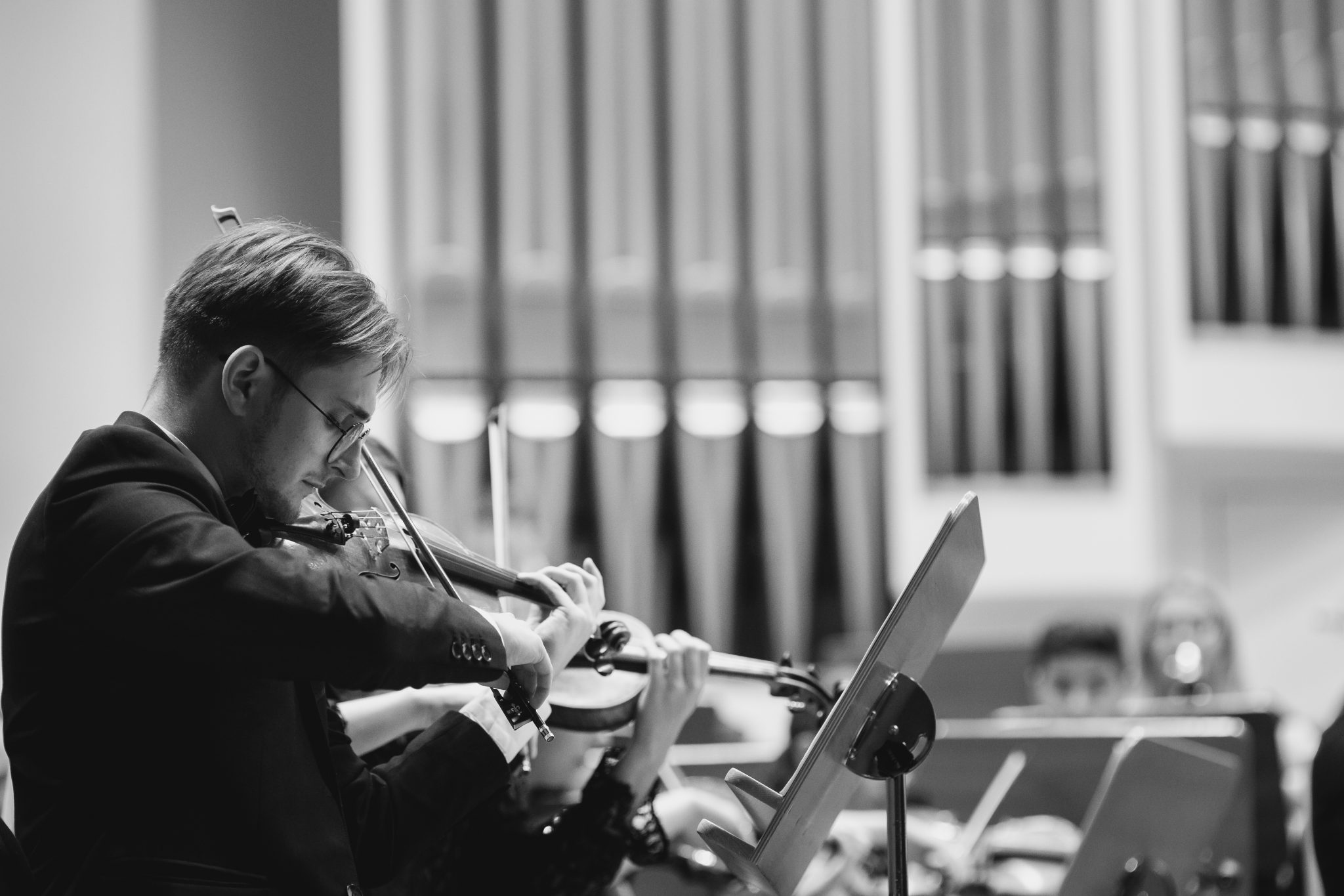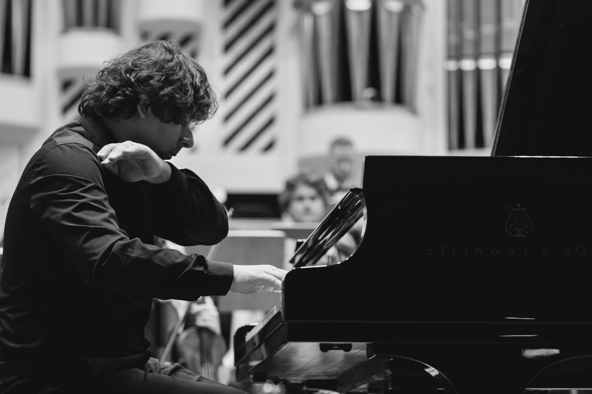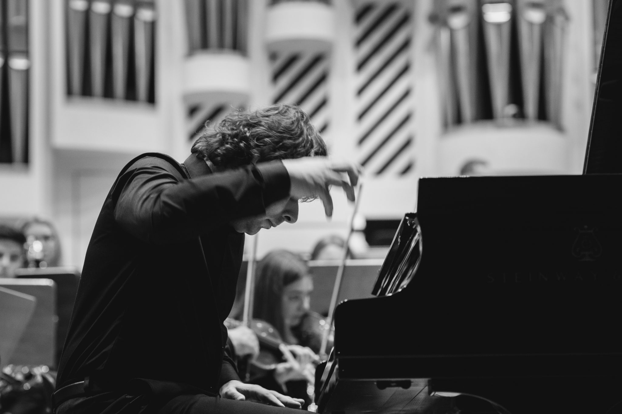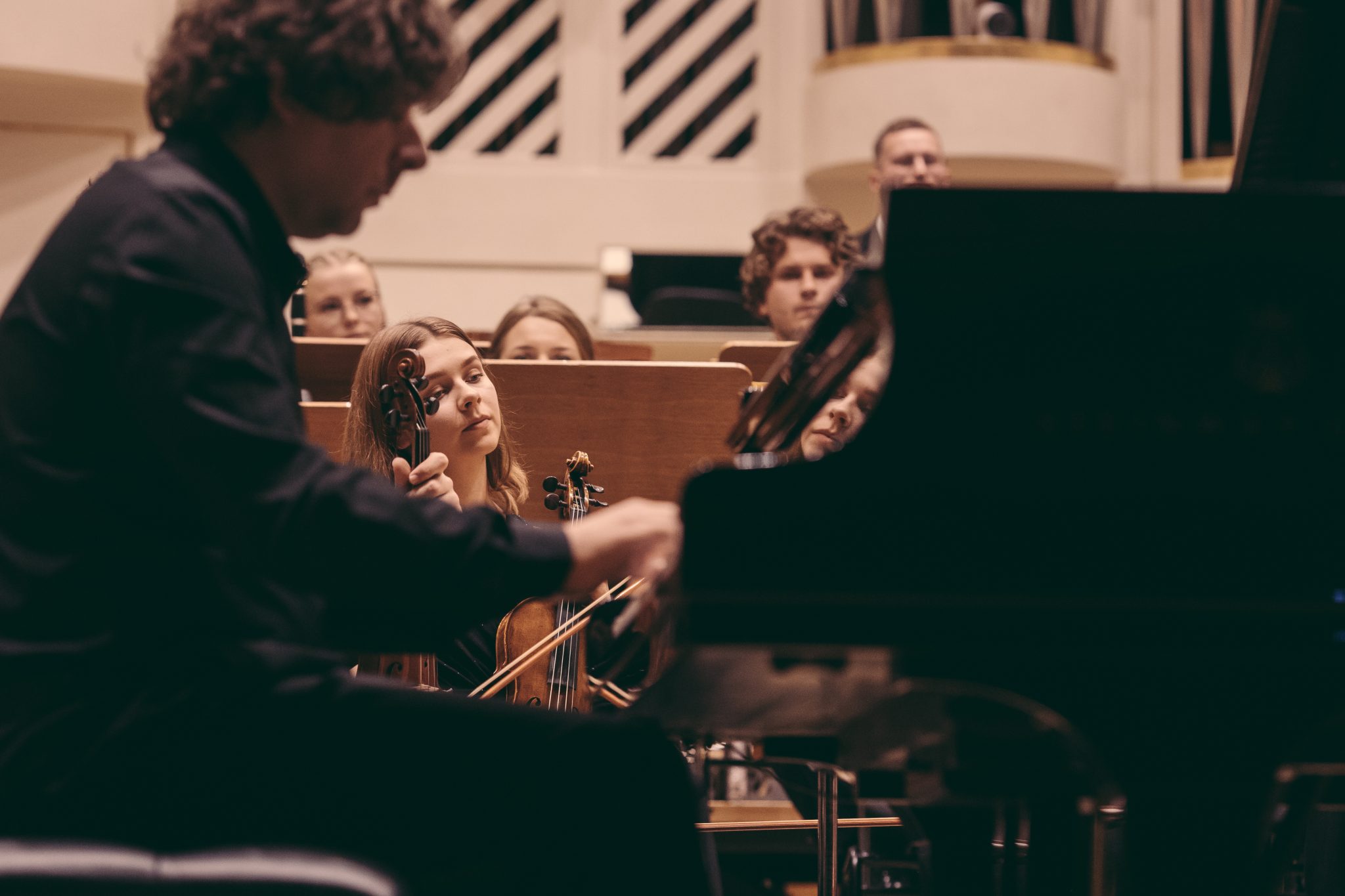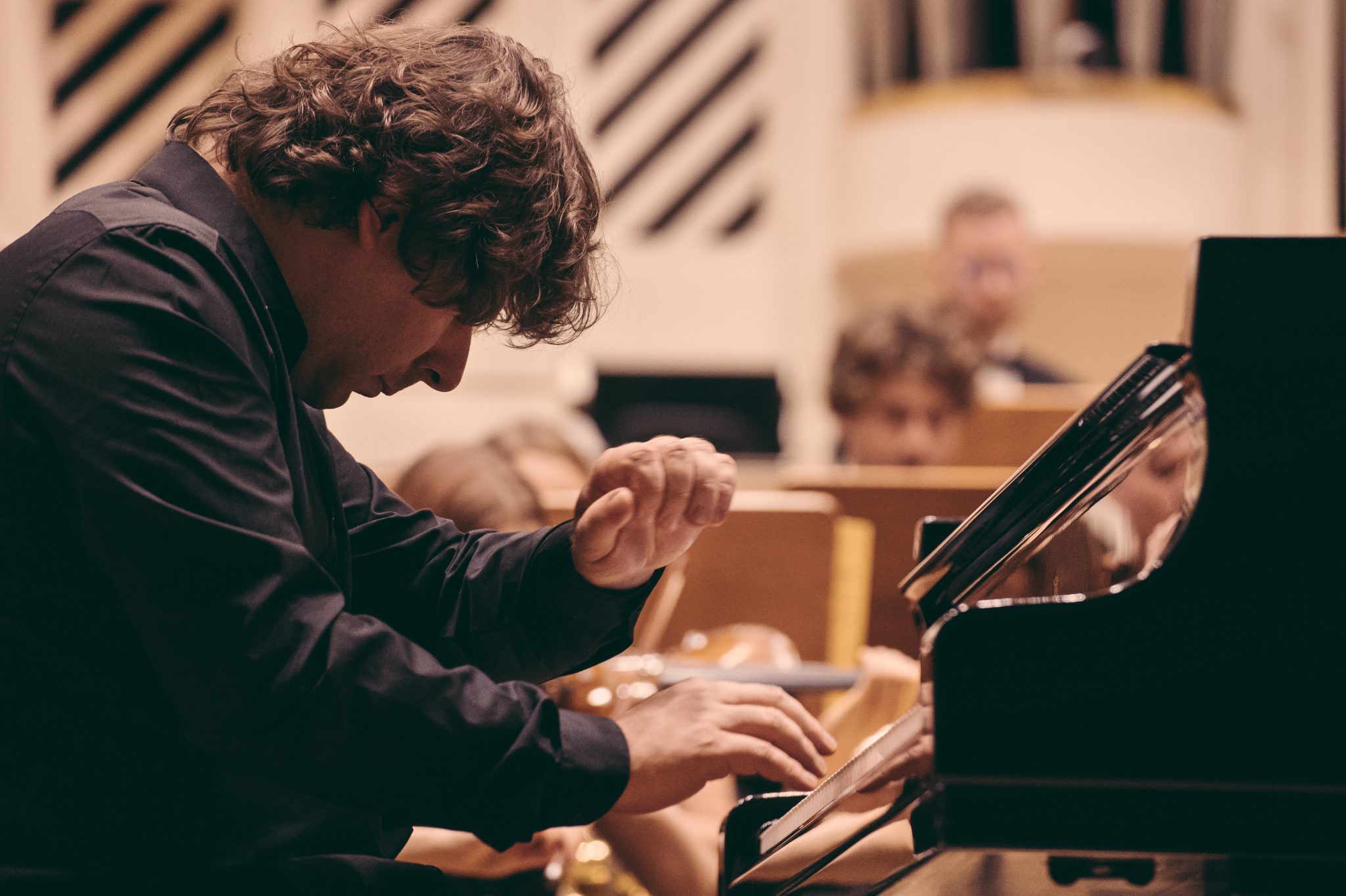 Koncert Orkiestry Symfonicznej w Filharmonii Krakowskiej pod dyrygenturą Rafała Jacka Delekty, z udziałem solistów – Łukasza Jankowskiego (flet) i Marka Szlezera (fortepian), fot. Piotr Markowski.