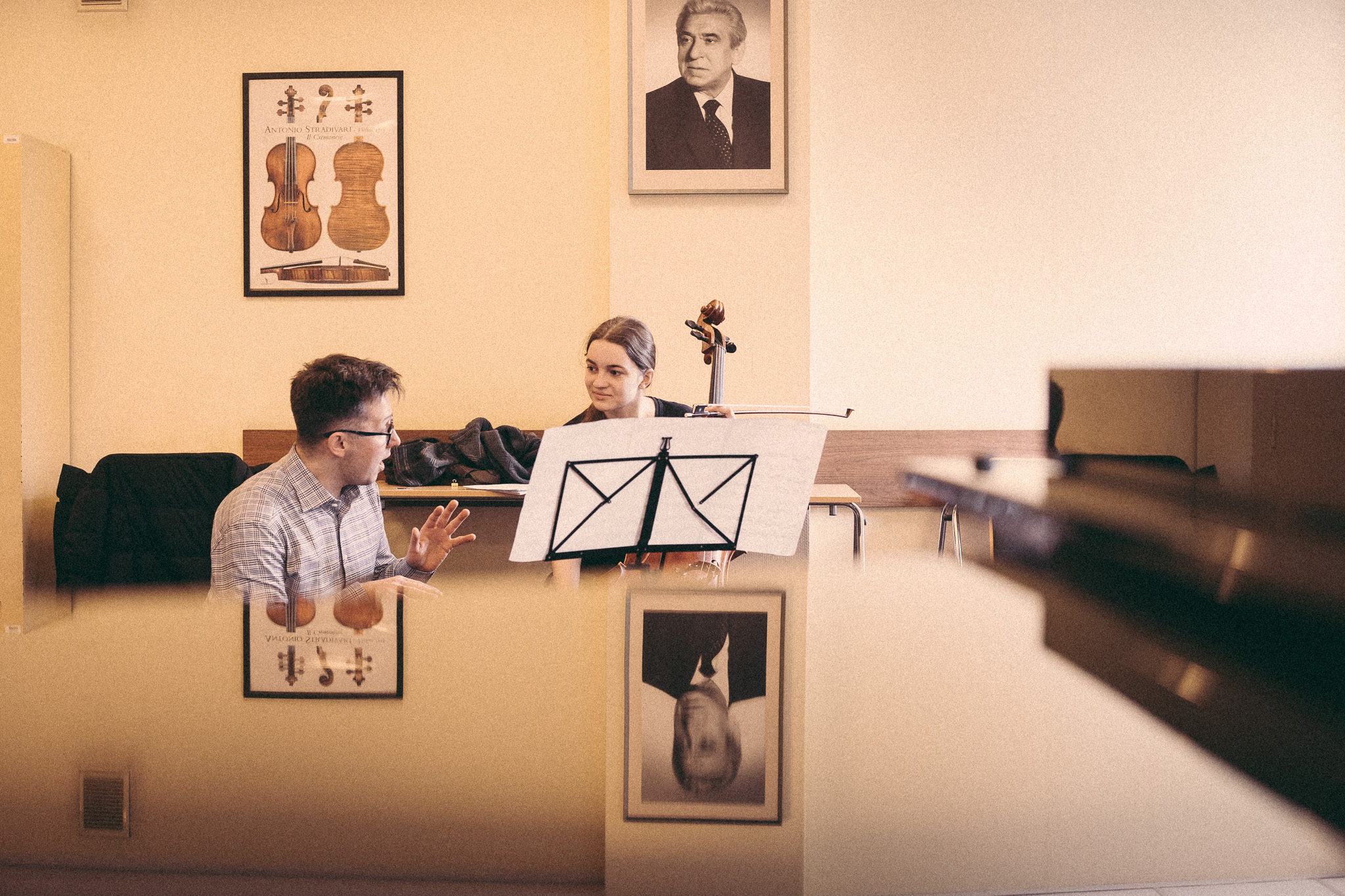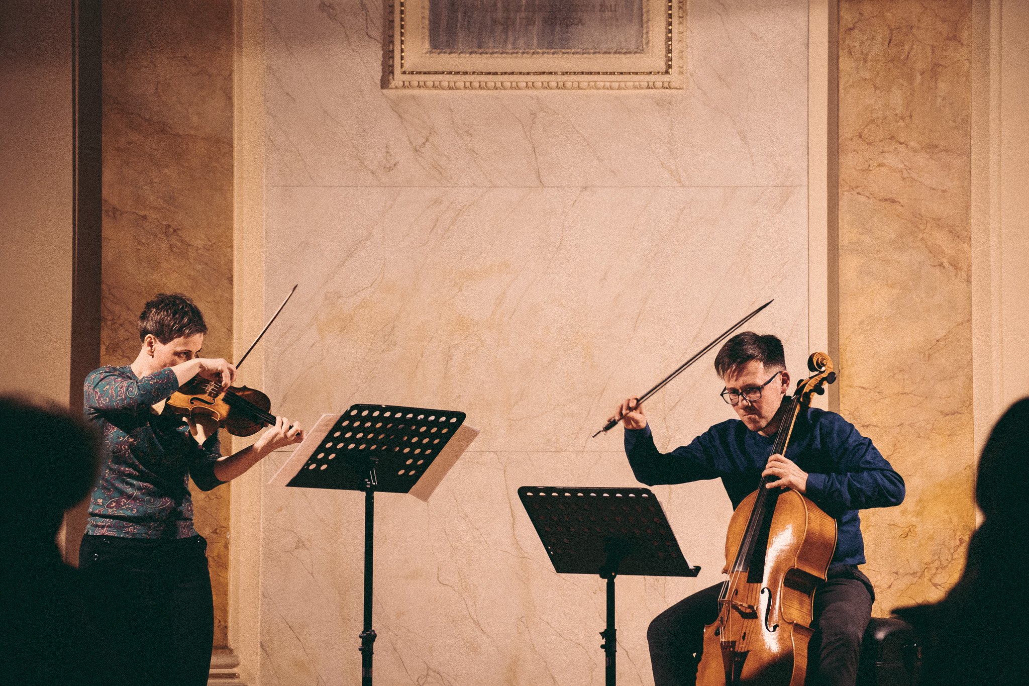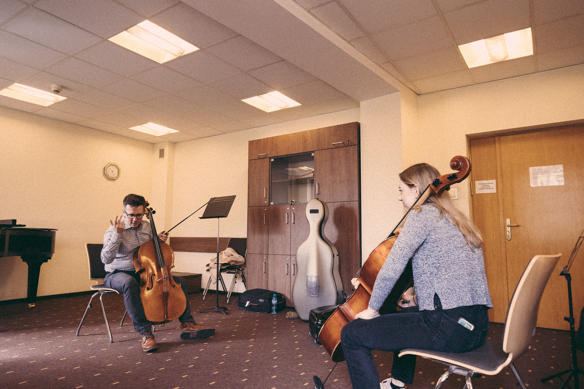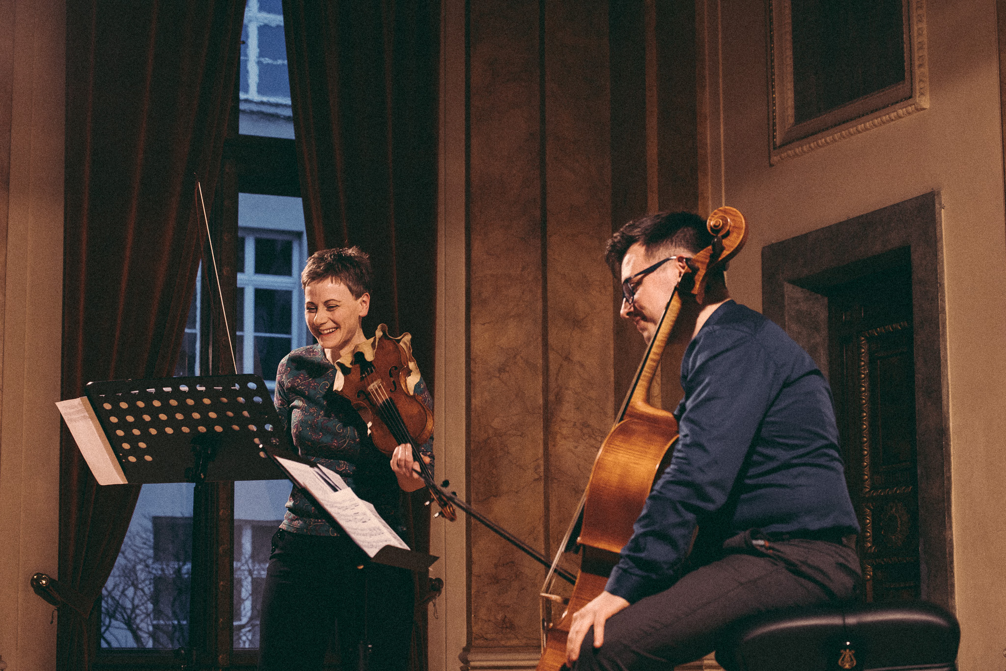 Photos from workshops with Tomasz Pokrzywiński and Marytna Pastuszka for cellists and violinists and from koncert as part of the 2nd scientific/artistic conference “Faces of violin”. Musicians: Martyna Pastuszka (violin), Tomasz Pokrzywiński (cello). Introdutcion – dr hab. Oriana Masternak.