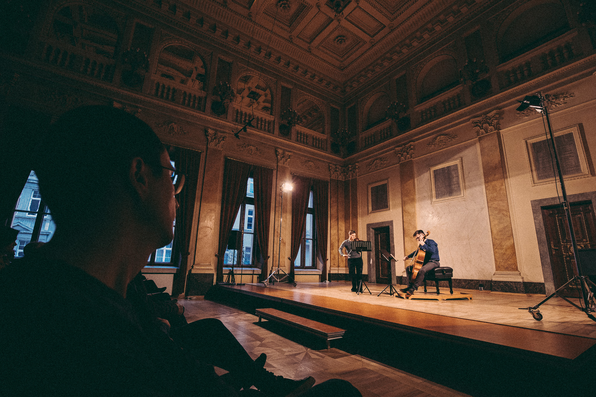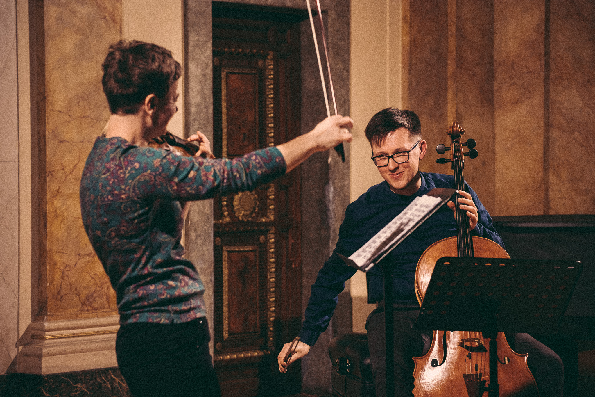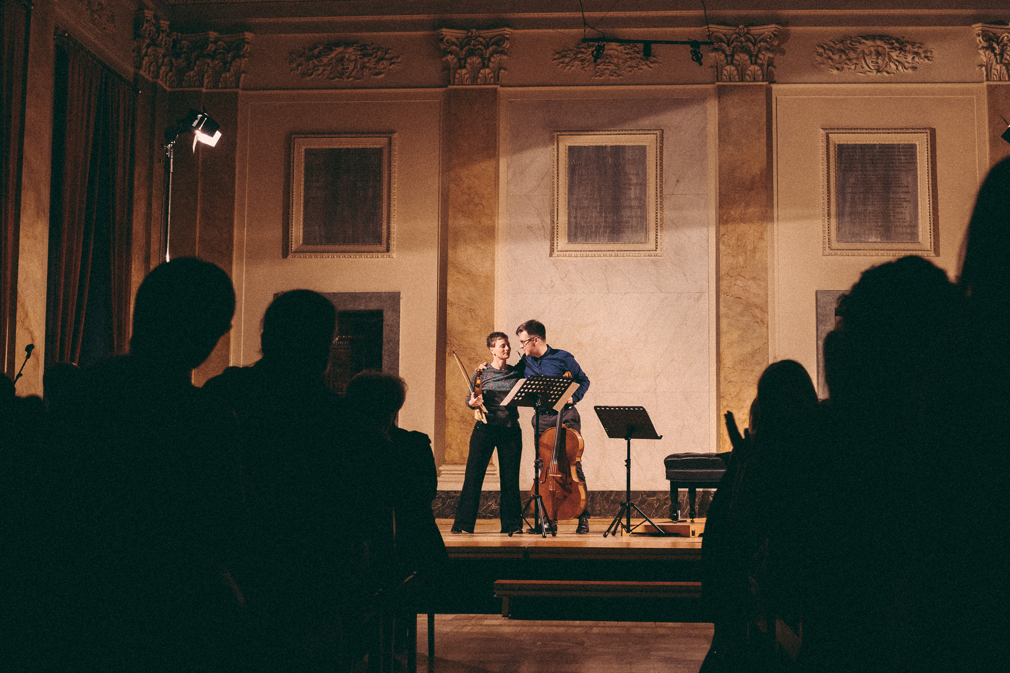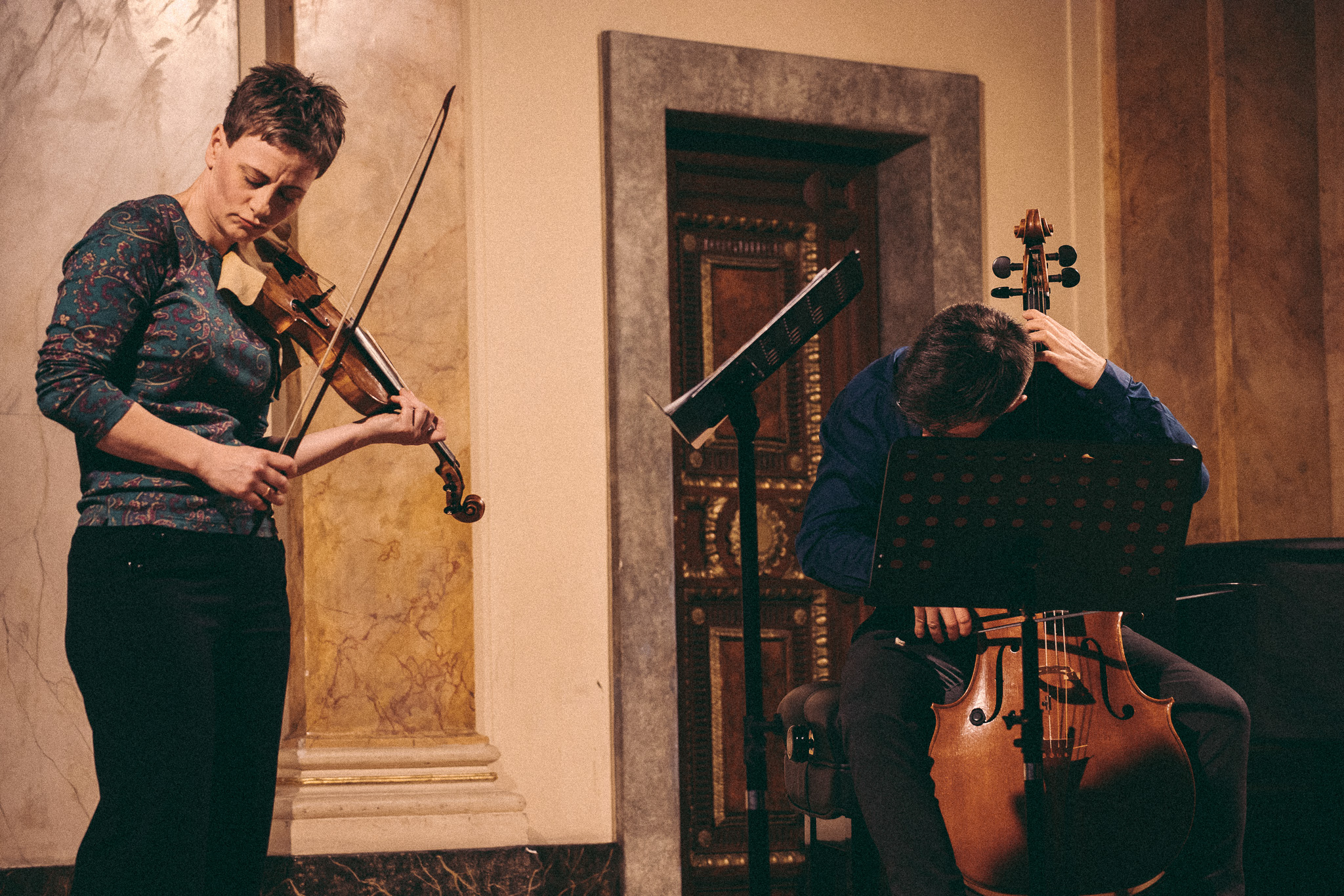 Photos from workshops with Tomasz Pokrzywiński and Marytna Pastuszka for cellists and violinists and from koncert as part of the 2nd scientific/artistic conference “Faces of violin”. Musicians: Martyna Pastuszka (violin), Tomasz Pokrzywiński (cello). Introdutcion – dr hab. Oriana Masternak.