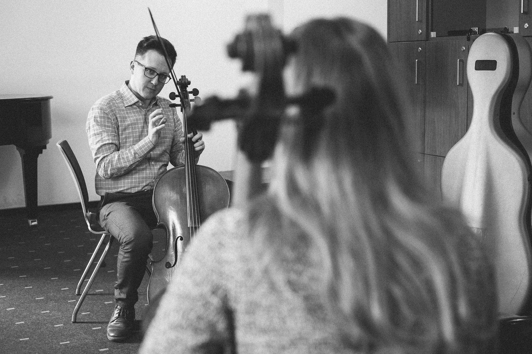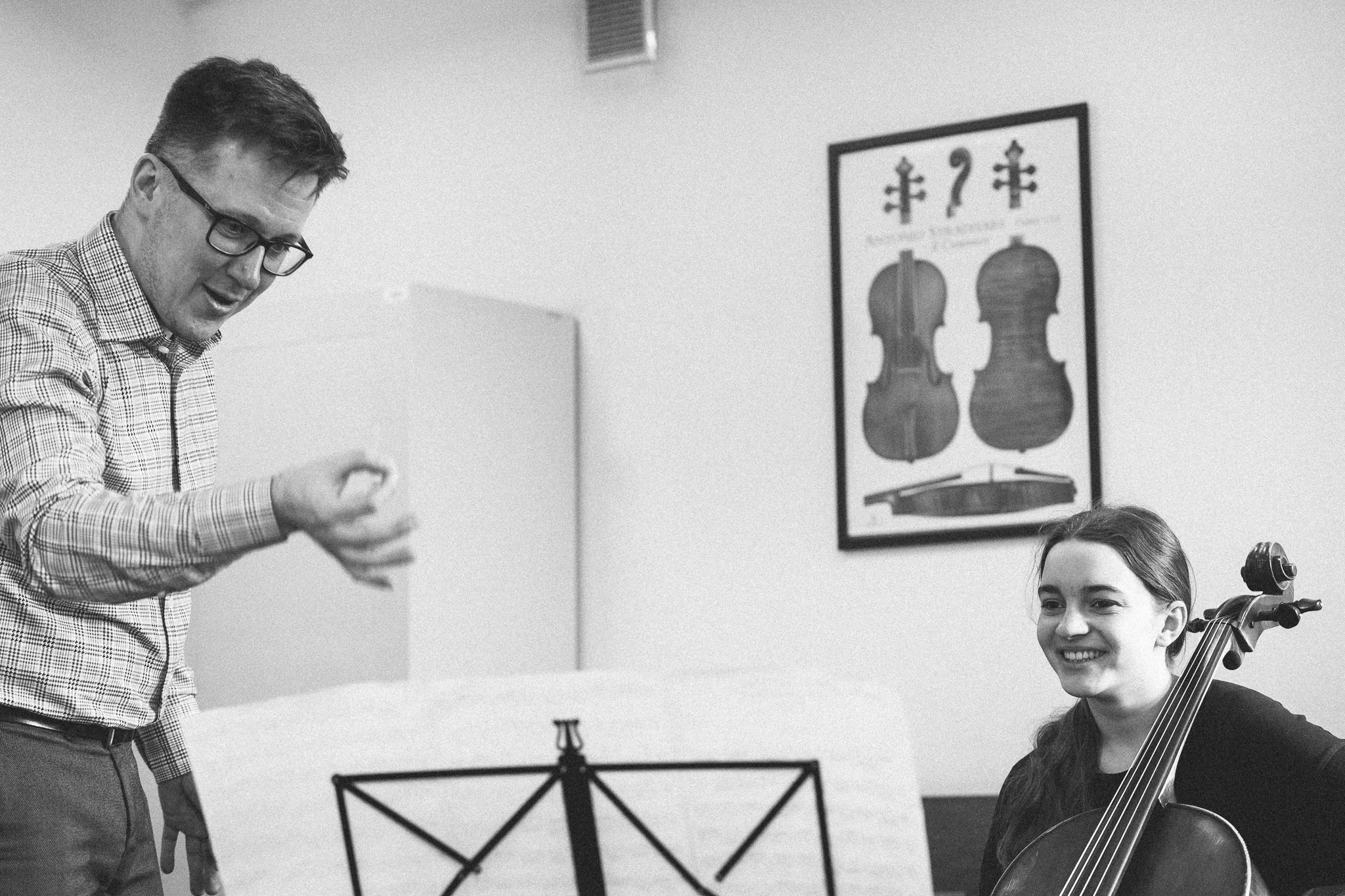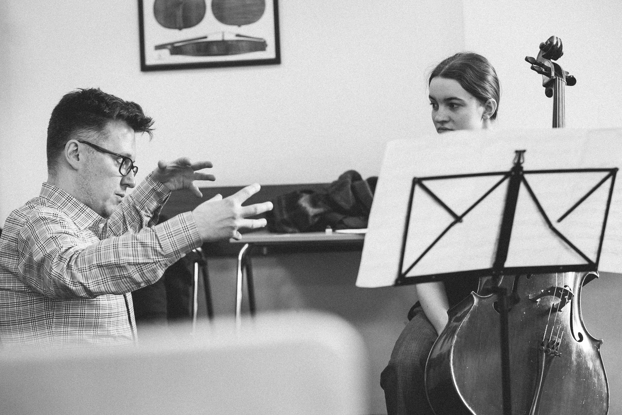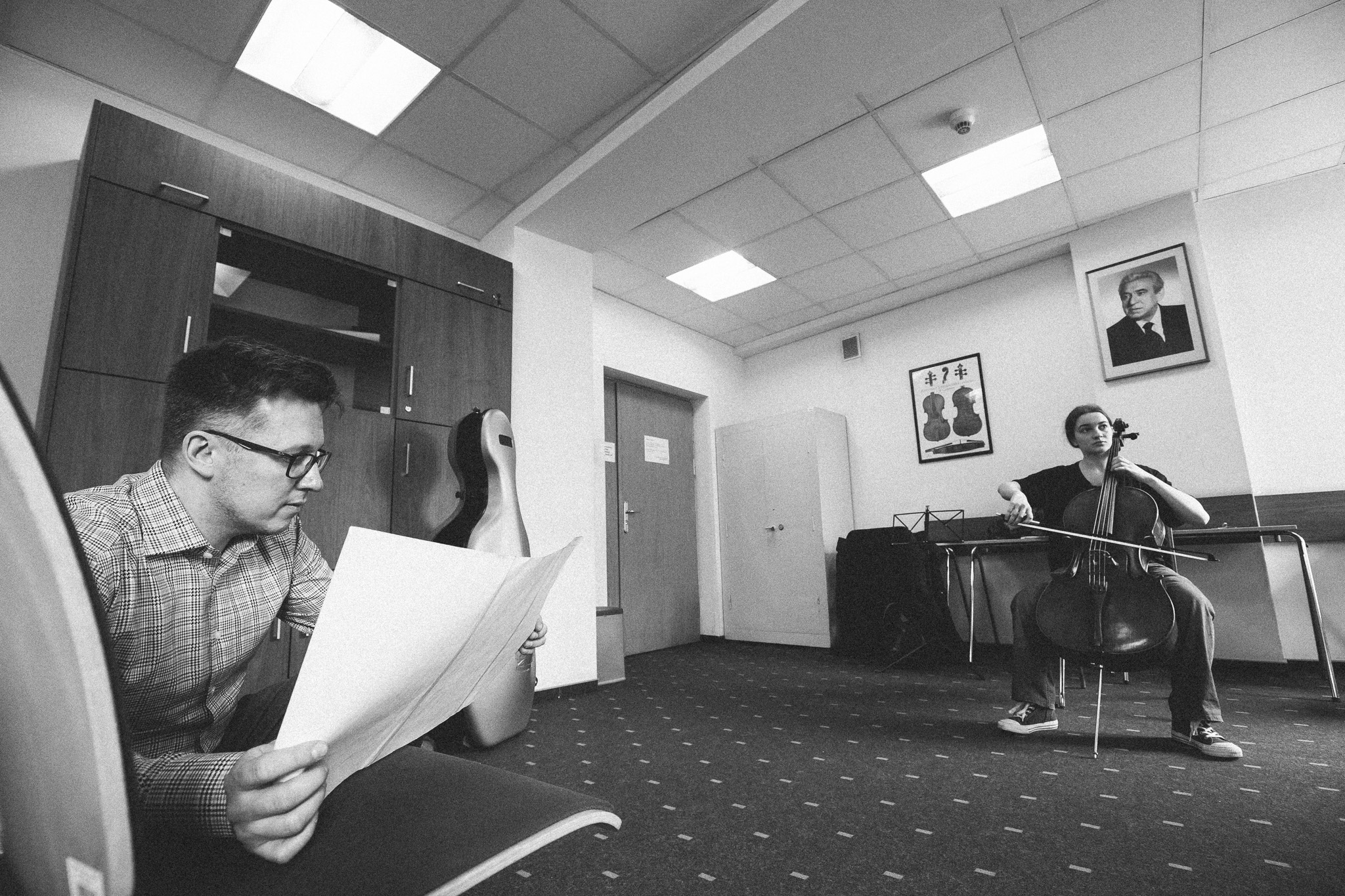 Photos from workshops with Tomasz Pokrzywiński and Marytna Pastuszka for cellists and violinists and from koncert as part of the 2nd scientific/artistic conference “Faces of violin”. Musicians: Martyna Pastuszka (violin), Tomasz Pokrzywiński (cello). Introdutcion – dr hab. Oriana Masternak.