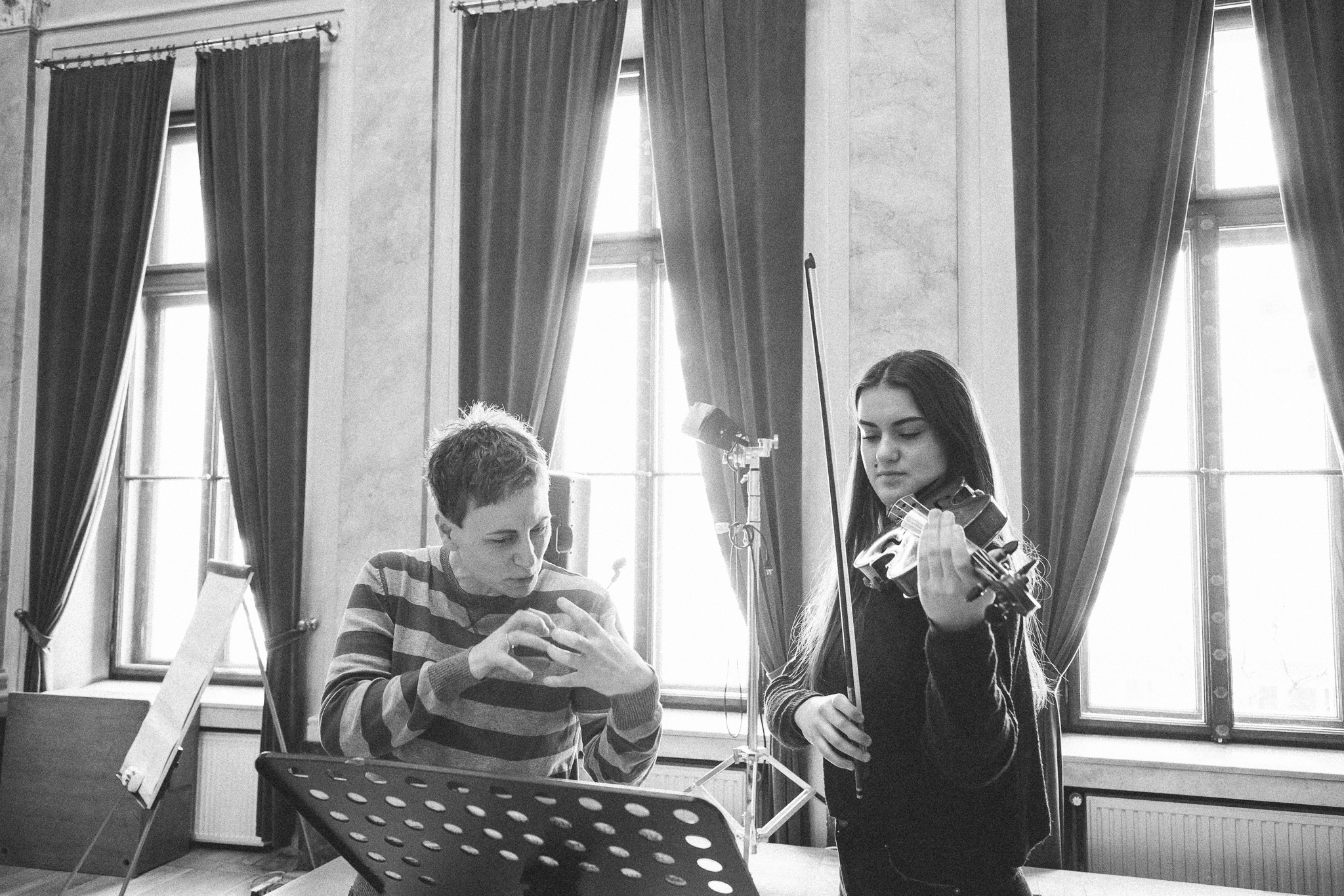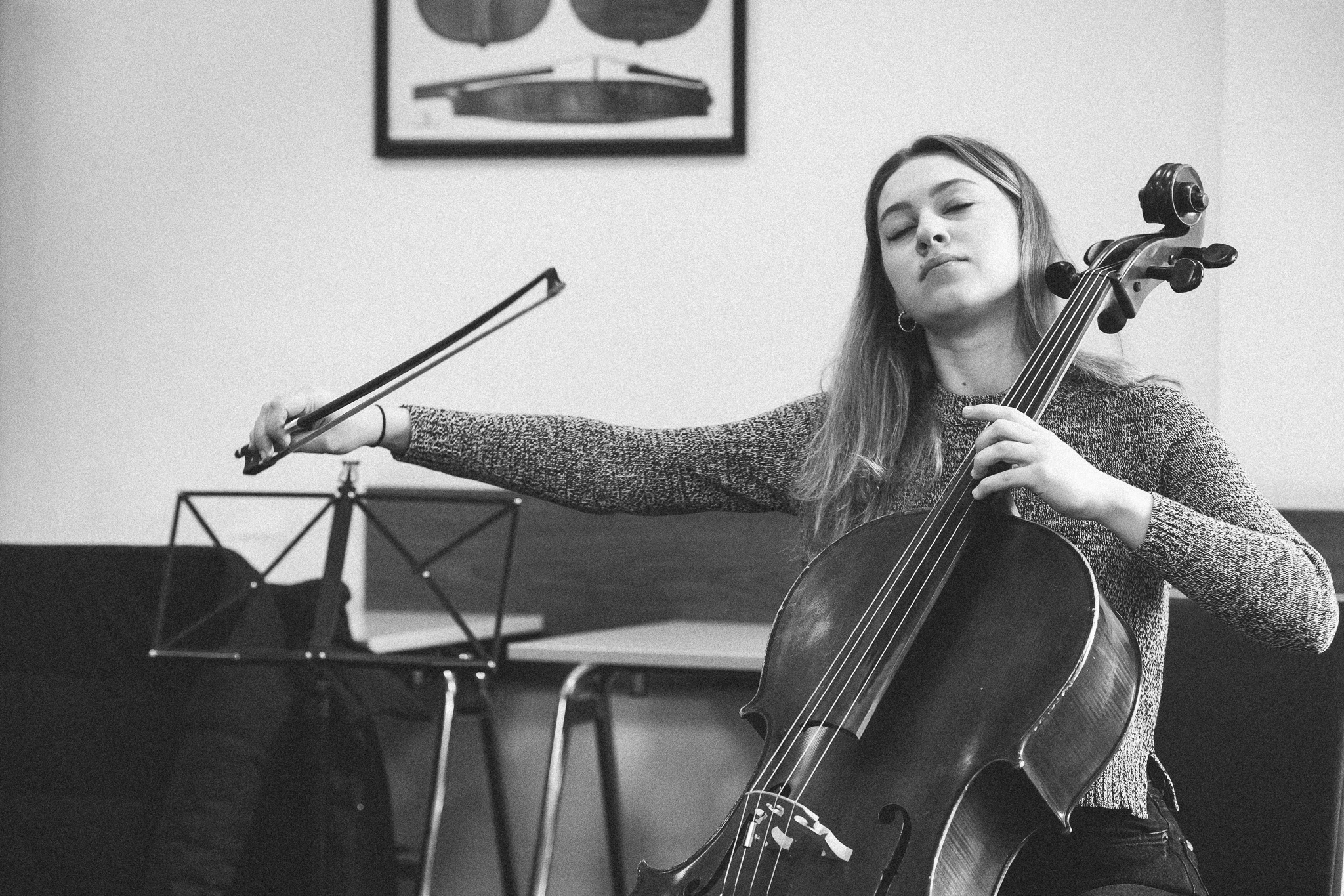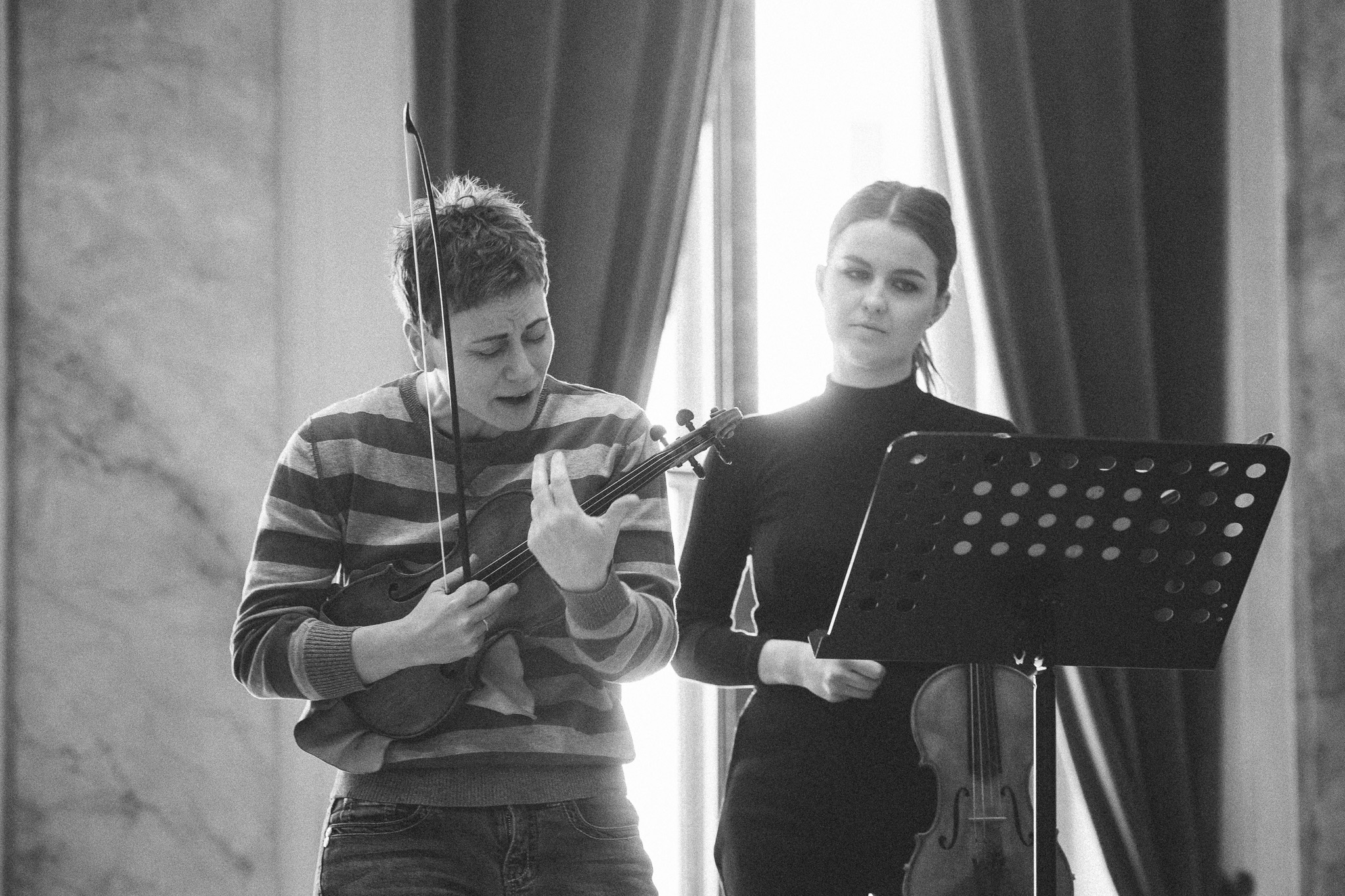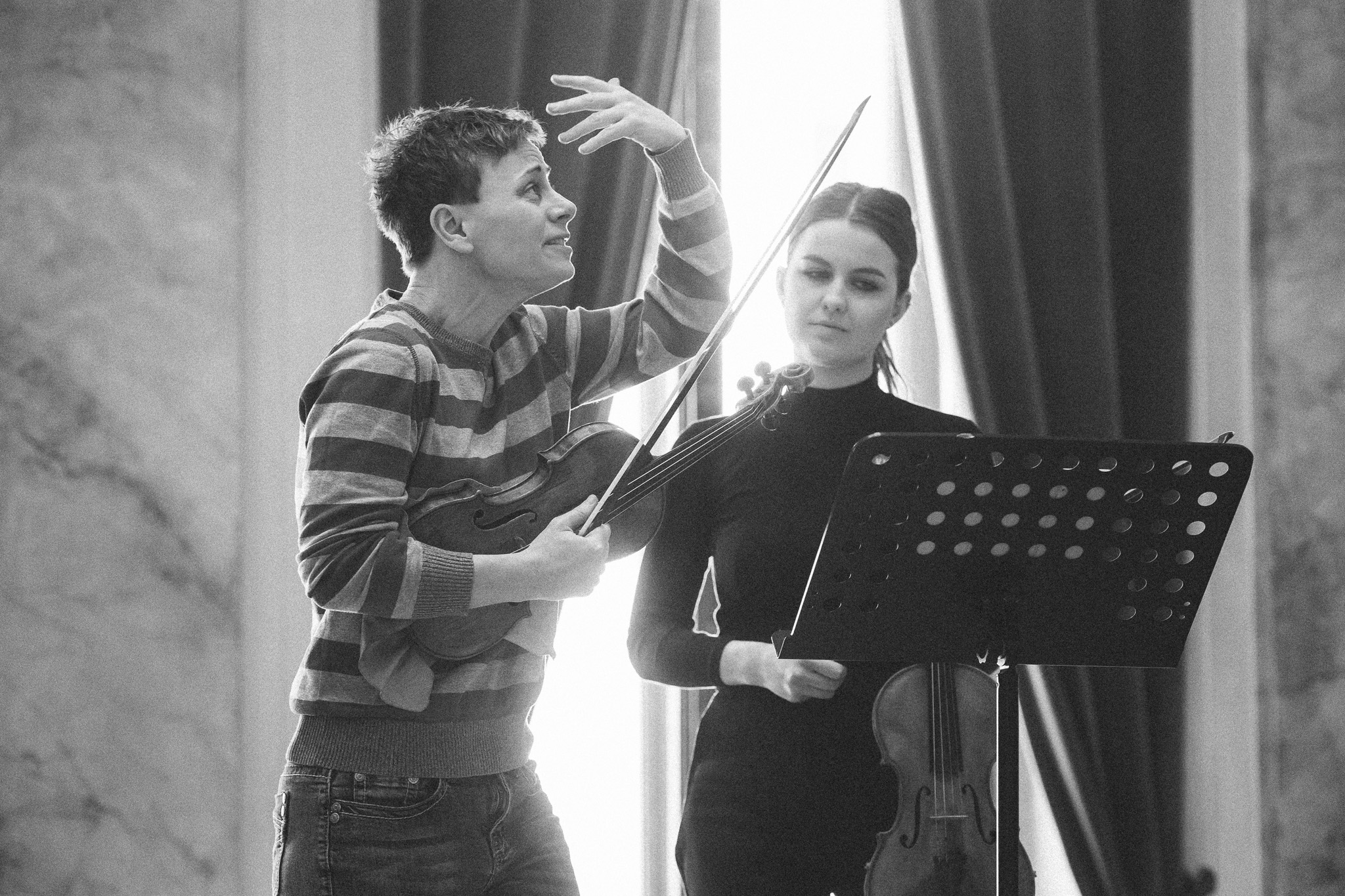 Photos from workshops with Tomasz Pokrzywiński and Marytna Pastuszka for cellists and violinists and from koncert as part of the 2nd scientific/artistic conference “Faces of violin”. Musicians: Martyna Pastuszka (violin), Tomasz Pokrzywiński (cello). Introdutcion – dr hab. Oriana Masternak.