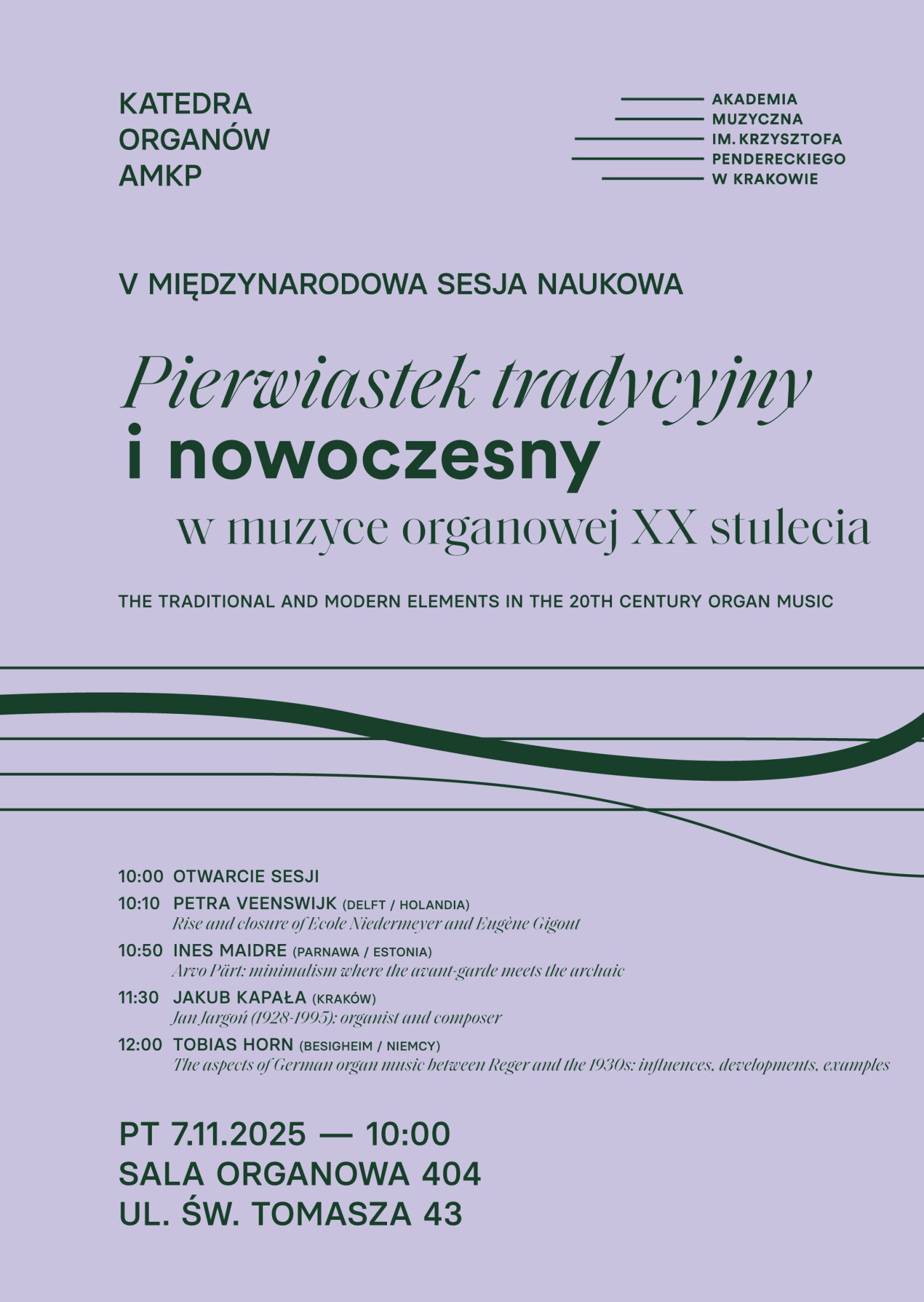 Department of Organ invites to the 5th International Academic Meeting The Traditional and Modern Elements in the 20th Century Organ Music taking place in the Krzysztof Penderecki Academy of Music in Kraków as part of the 22nd International Jan Jargoń All Souls’ Day Organ Festival.