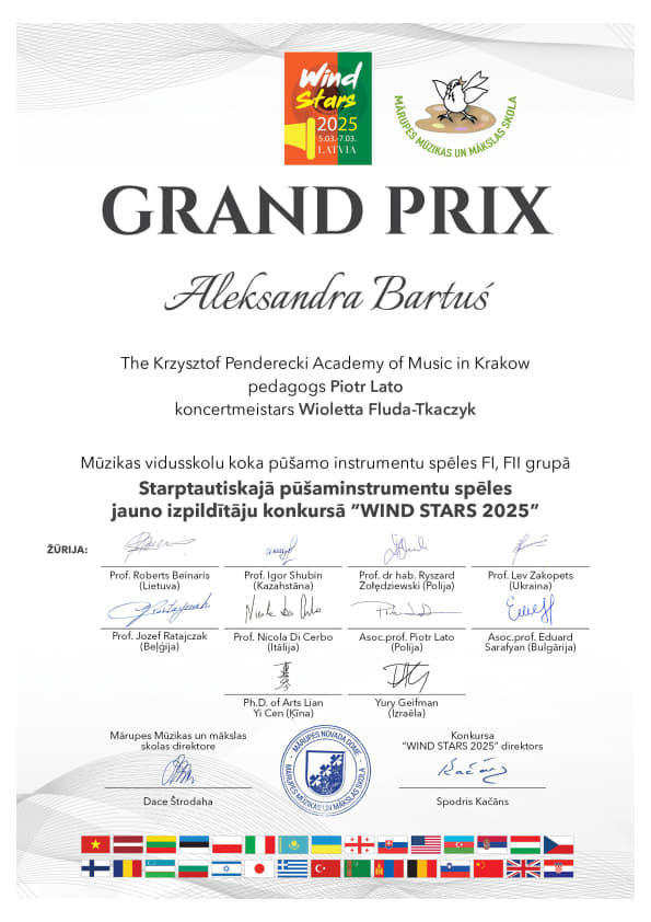 - Grand Prix – International Competition for Young Performers of Wind Instruments Wind Stars 2025