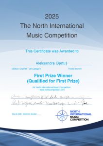 - I prize – The North International Music Competition, Stockholm, Sweden, 2025