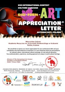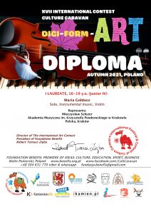 - I nagroda – XVII International Contest Culture Caravan „Digi Form Art” Autumn 2021 – Poland.