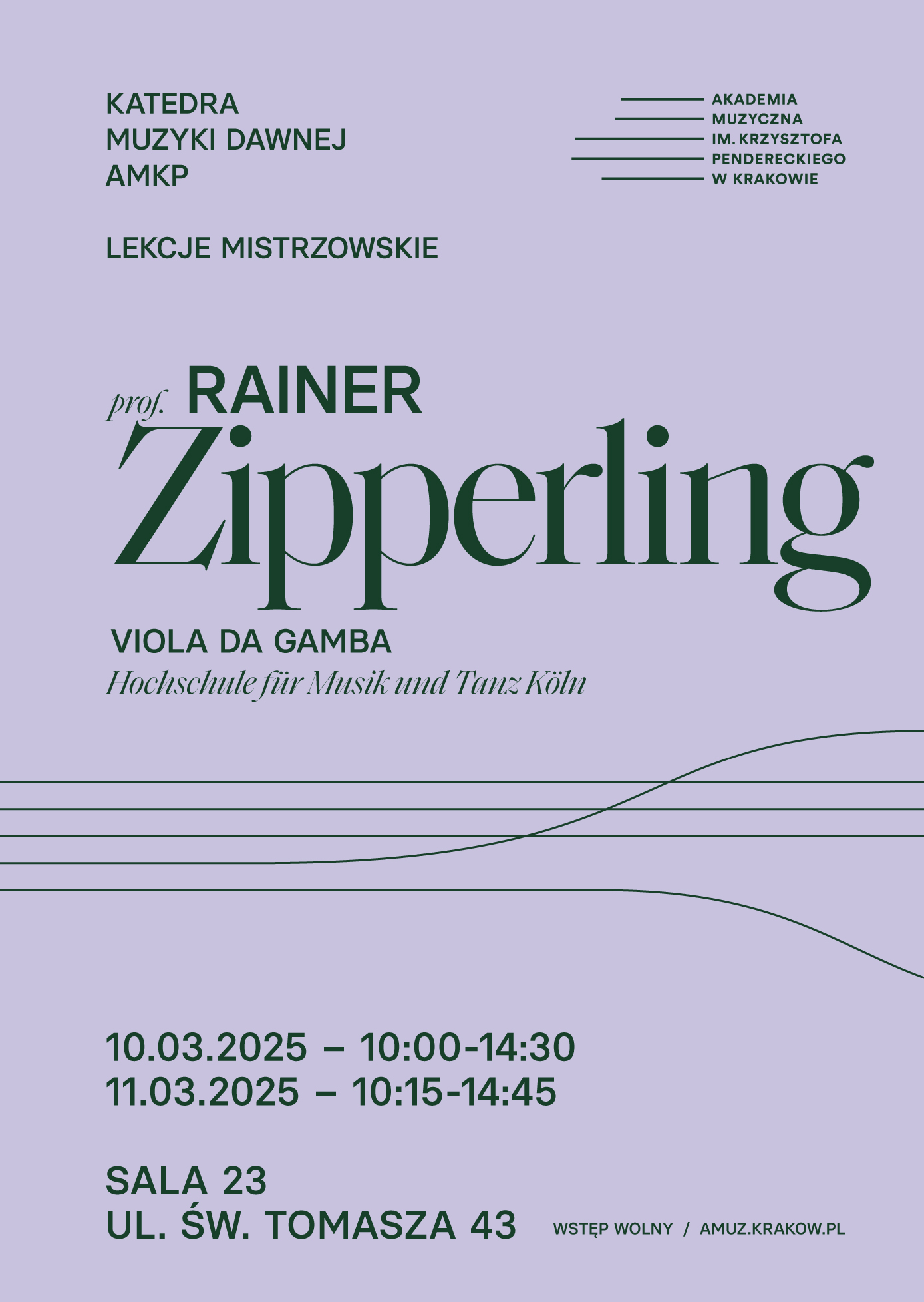 Kurs mistrzowski z prof. Rainerem Zipperlingiem (viola da gamba) | 10-11.03.2025