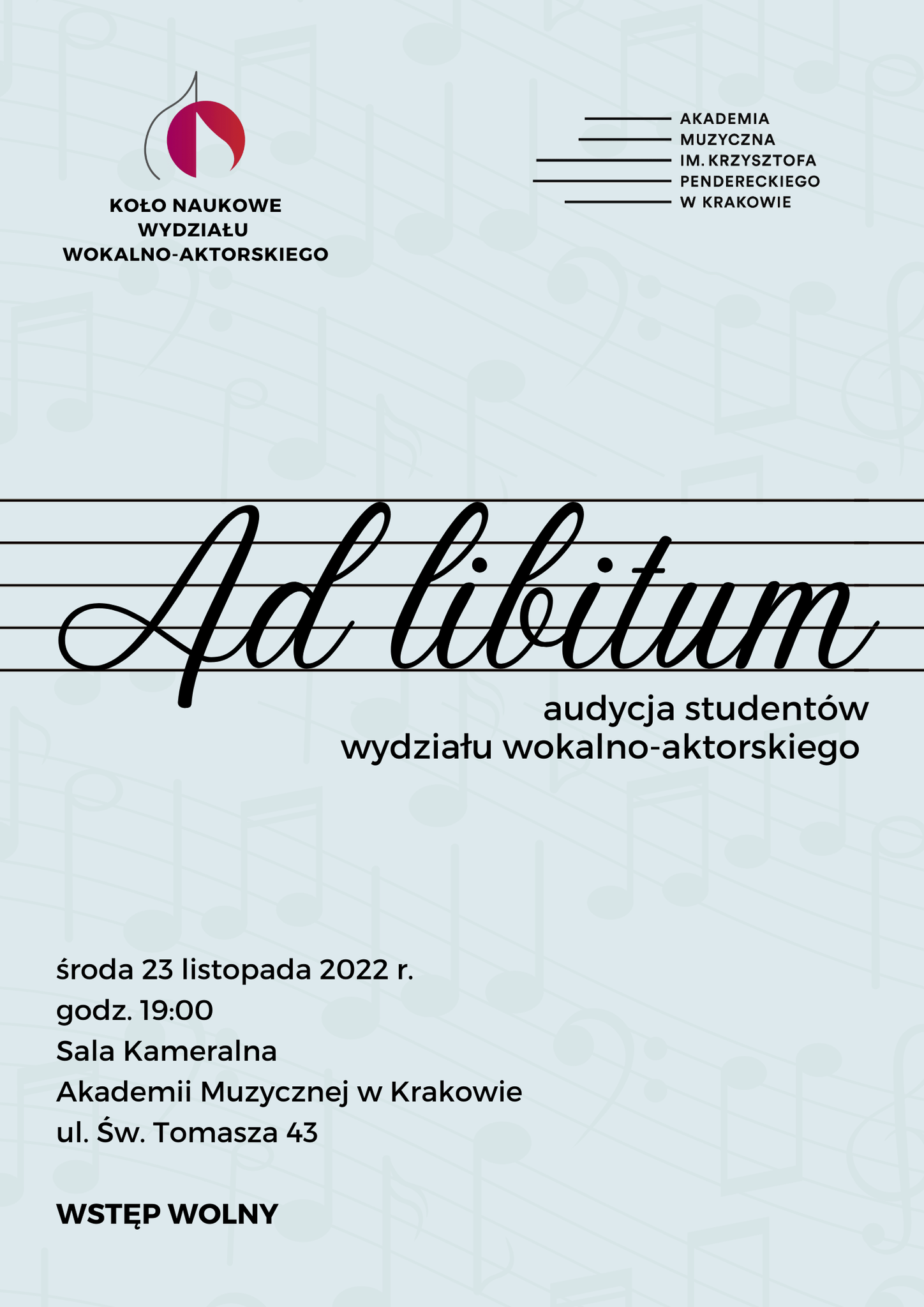Ad libitum – audycja studentów Wydziału Wokalno-Aktorskiego | 23.11.2022