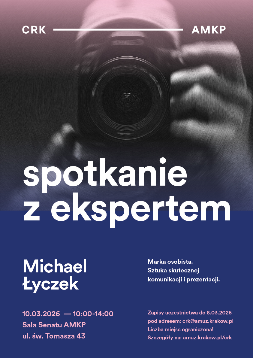 Zapisy uczestnictwa do 8.03.2026 pod adresem: crk@amuz.krakow.pl. W wiadomości mailowej prosimy o podanie kierunku studiów oraz numeru albumu.