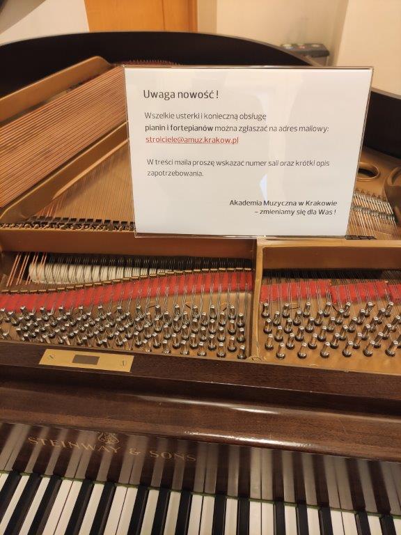 Wszelkie usterki i konieczną obsługę pianin i fortepianów prosimy zgłaszać na adres mailowy: stroiciele@amuz.krakow.pl
