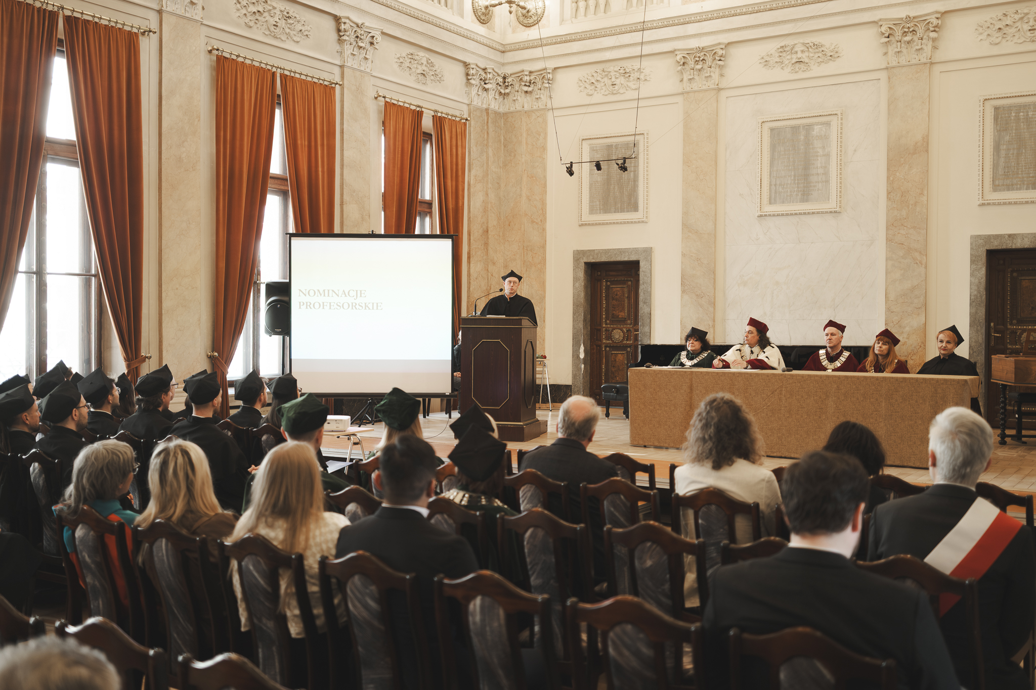 Uroczystości przewodniczyli: JM Rektor prof. dr hab. Mariusz Sielski, prorektorzy: prof. dr hab. Piotr Lato i dr Maria Wilczek-Krupa oraz Prezydium Rady do Spraw Dyscypliny Sztuki Muzyczne: dr hab. Monika Gardoń-Preinl, prof. AMKP i prof. dr hab. Katarzyna Oleś-Blacha.