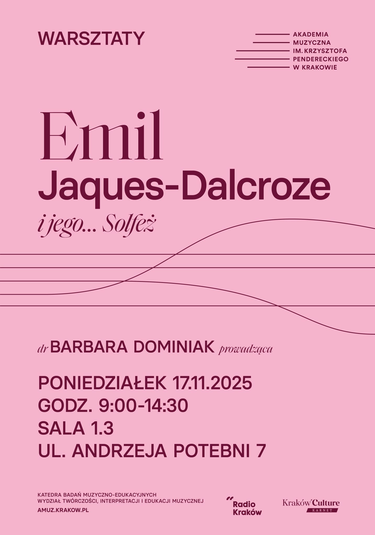 Katedra Badań Muzyczno-Edukacyjnych zaprasza na warsztaty z dr Barbarą Dominiak z Akademii Muzycznej im. Grażyny i Kiejstuta Bacewiczów w Łodzi.