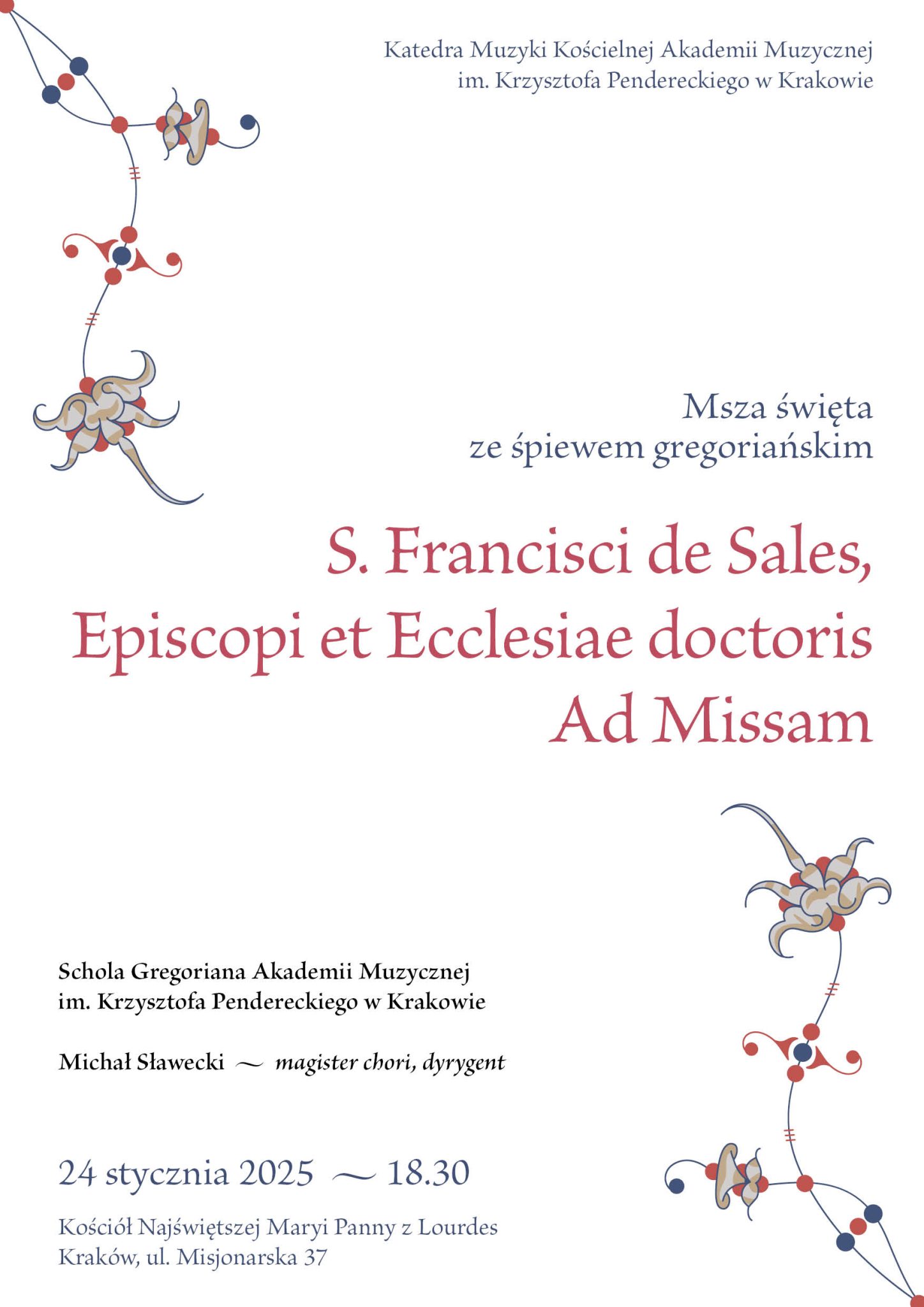 a Katedra Muzyki Kościelnej zaprasza na Mszę świętą ze śpiewem gregoriańskim w wykonaniu Scholi Gregoriana AMKP. Magister chori, dyrygent – Michał Sławecki.