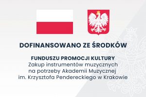 Zakup fortepianu dofinansowano ze środków Ministra Kultury i Dziedzictwa Narodowego pochodzących z Funduszu Promocji Kultury – państwowego funduszu celowego w ramach Programu Infrastruktura szkolnictwa artystycznego na zadanie pt. Zakup instrumentów muzycznych na potrzeby Akademii Muzycznej im. Krzysztofa Pendereckiego w Krakowie.