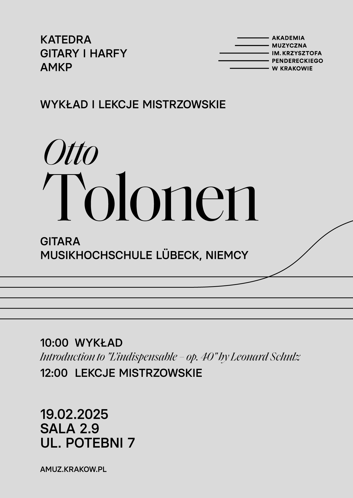 Katedra Gitary i Harfy zaprasza na wykład i lekcje mistrzowskie z prof. Ottonem Tolonenem z Musikhochschule Lübeck (Niemcy).