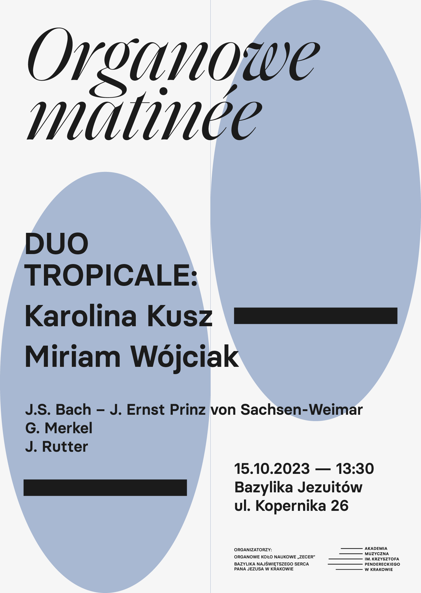 XVIII Organowe Matinée w wykonaniu Karoliny Kusz (UPJPII) oraz Miriam Wójciak (UPJPII/AMKP) | 15.10.2023