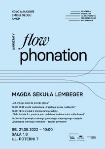 Koło Naukowe Emisji Głosu zaprasza serdecznie na wykłady i warsztaty Flow phonation: „Od energii ciała do energii głosu”. Warsztaty poprowadzi Magda Sekuła Lembeger.