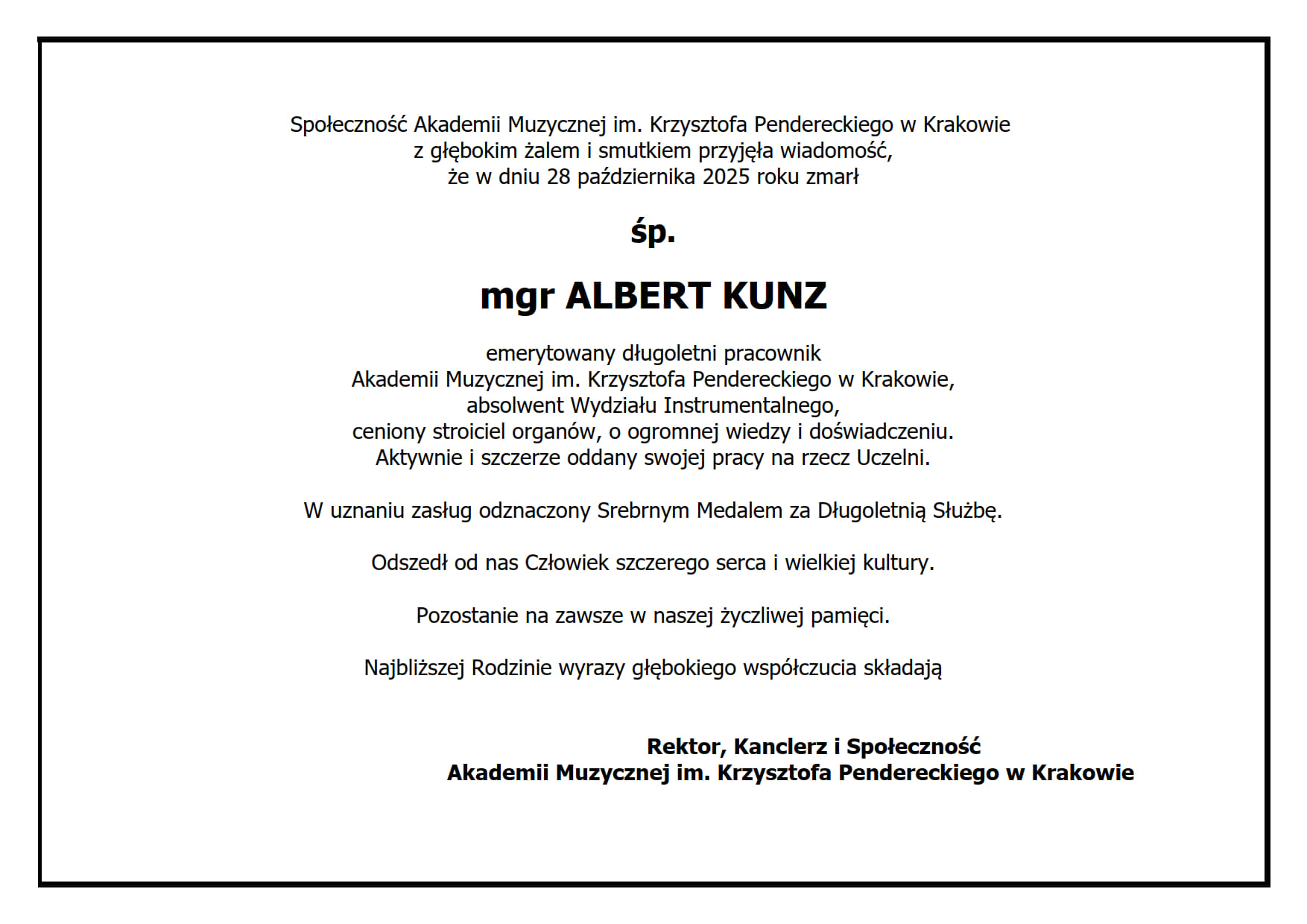 Zmarł śp. mgr Albert Kunz